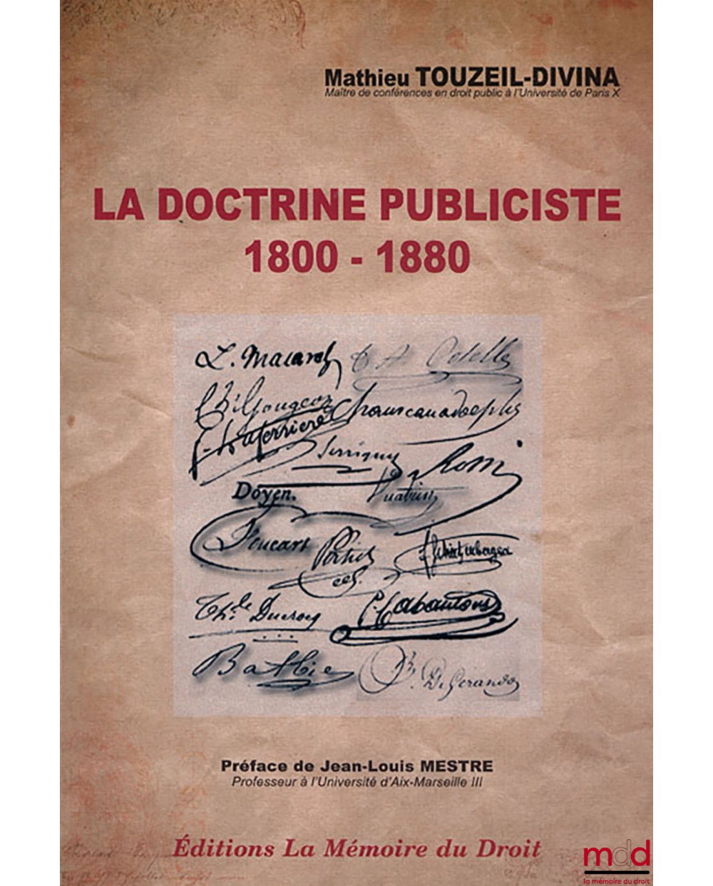 LA DOCTRINE PUBLICISTE, 1800 - 1880, Éléments de patristique administrative, Préface de Jean-Louis MESTRE, ouvrage couronné du grand prix Choucri Cardahi de l’Institut de France, Académie des Sciences Morales & Politiques