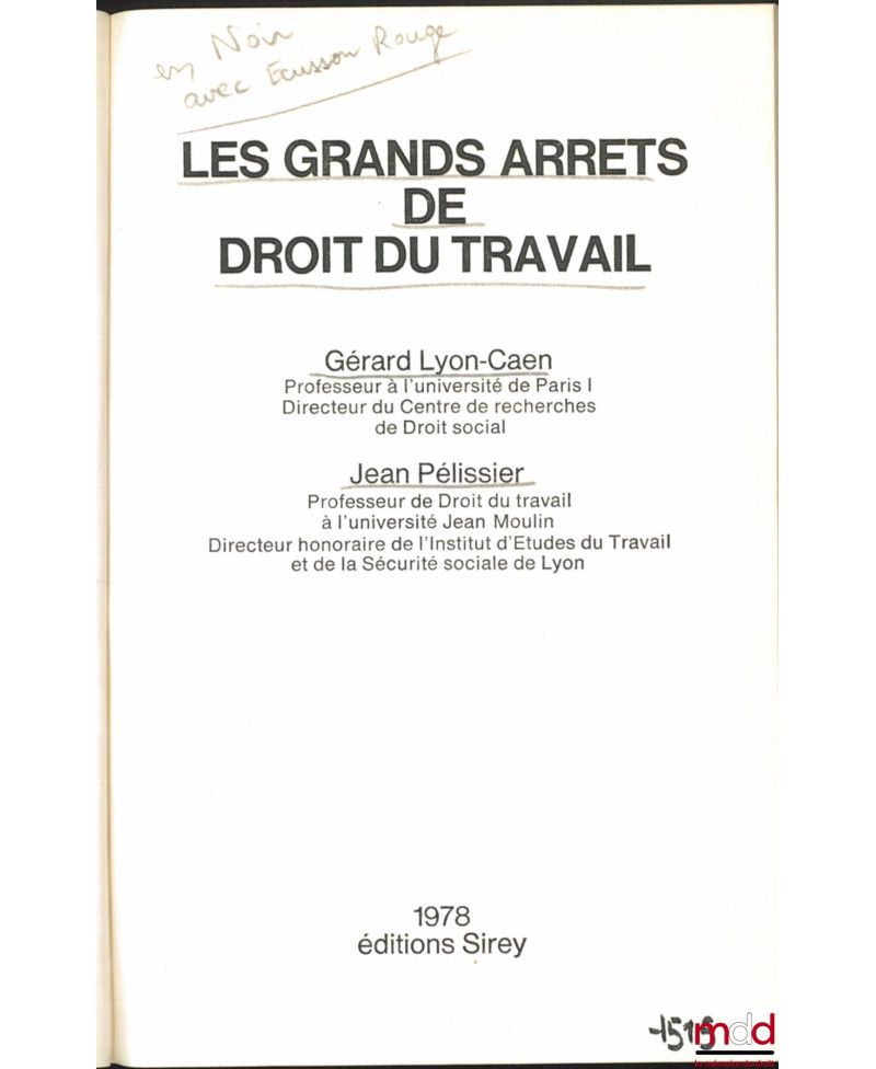 LYON-CAEN (Gérard) et PÉLISSIER (Jean)