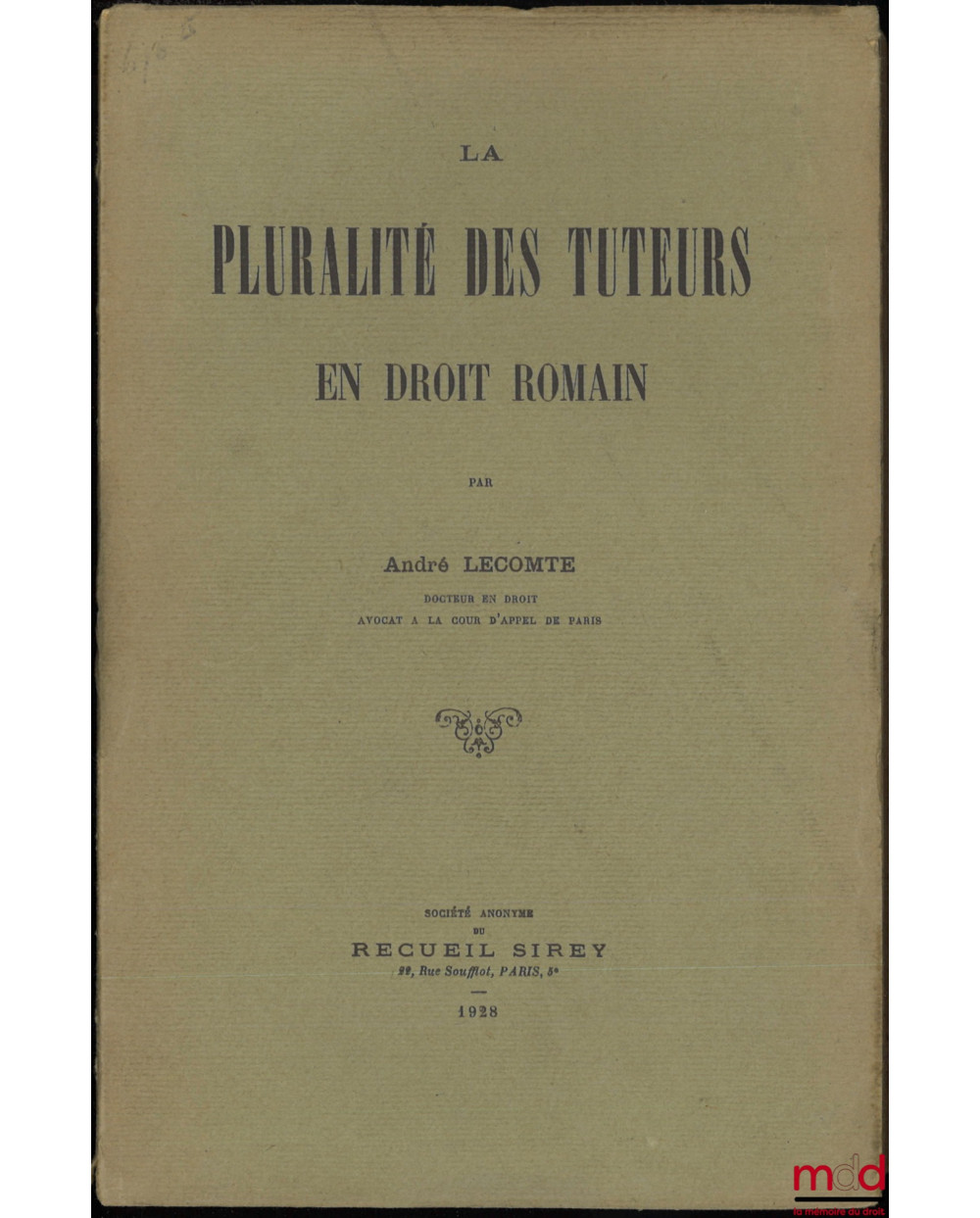 LA PLURALITÉ DES TUTEURS EN DROIT ROMAIN
