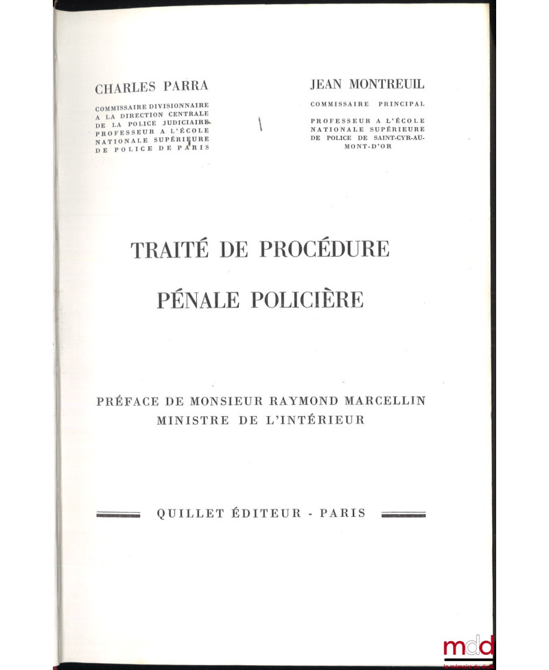 TRAITÉ DE PROCÉDURE PÉNALE POLICIÈRE, Préface de Raymond Marcellin