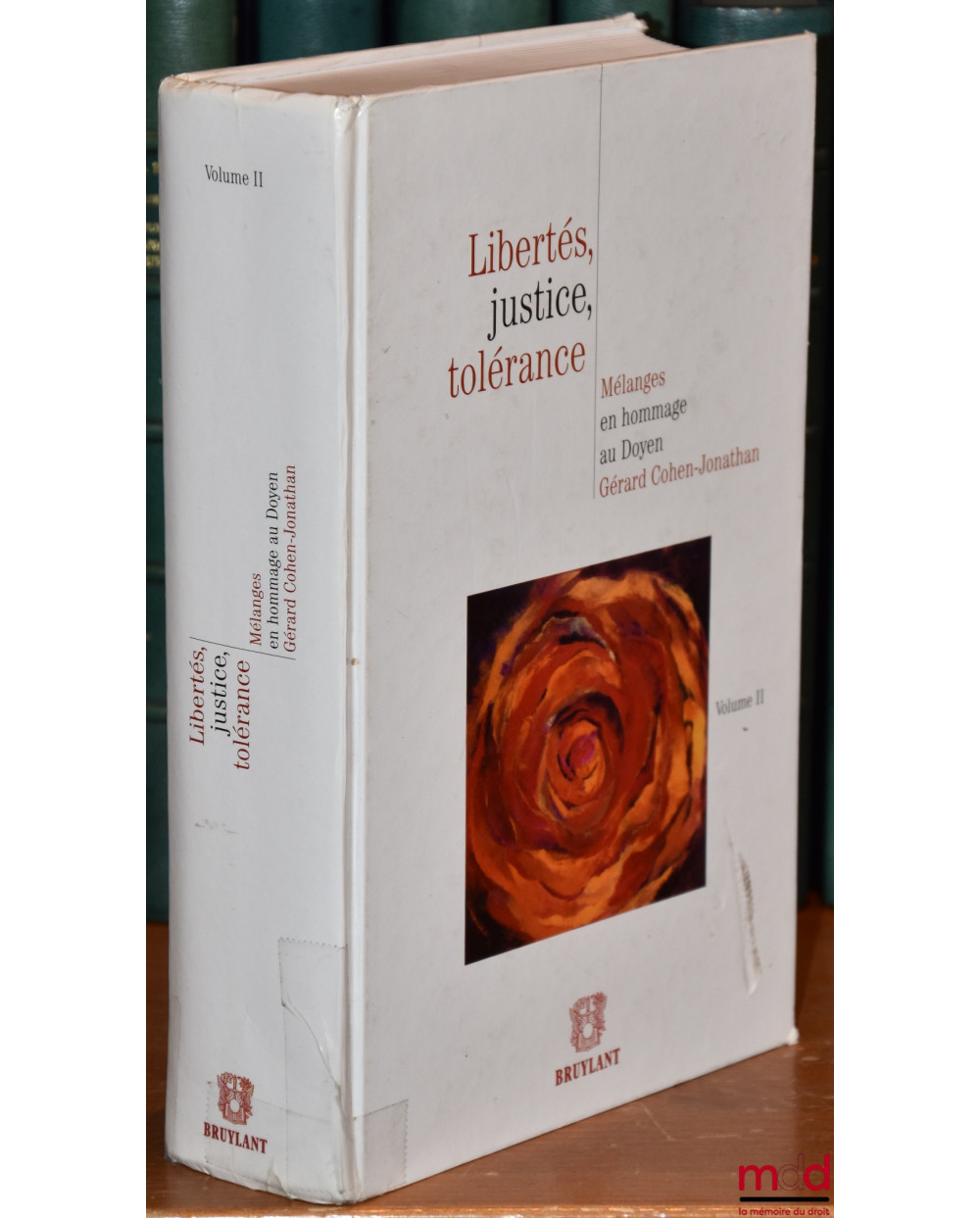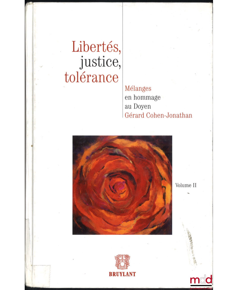 LIBERTÉS, JUSTICE, TOLÉRANCE. Mélanges en hommage au Doyen Gérard COHEN-JONATHAN, t. II [seul]
