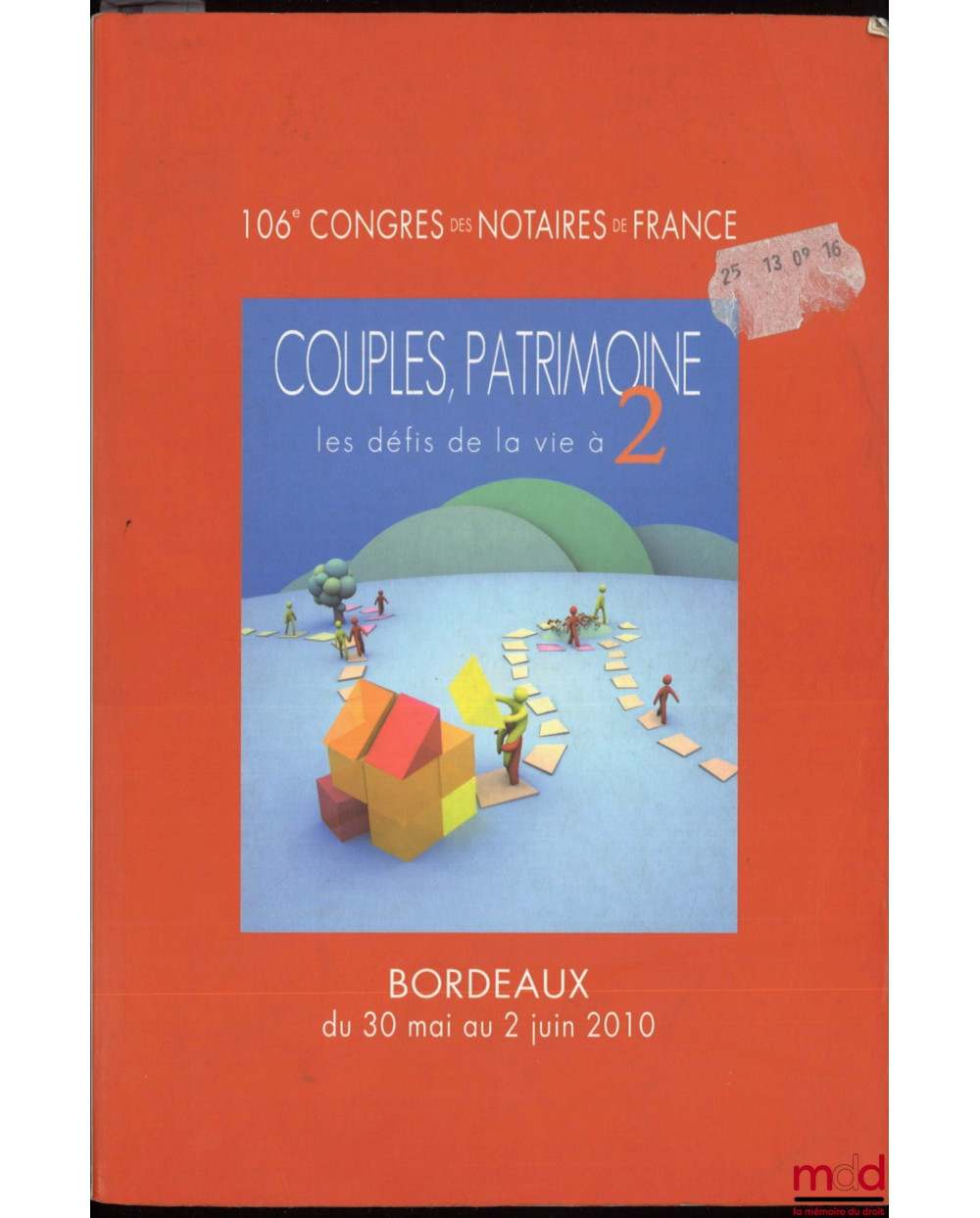 COUPLES, PATRIMOINE, les défis de la vie à 2, 106e congrès des notaires de France, Bordeaux du 30 mai au 2 juin 2010, Avant-propos de Damien Brac de la Perriere