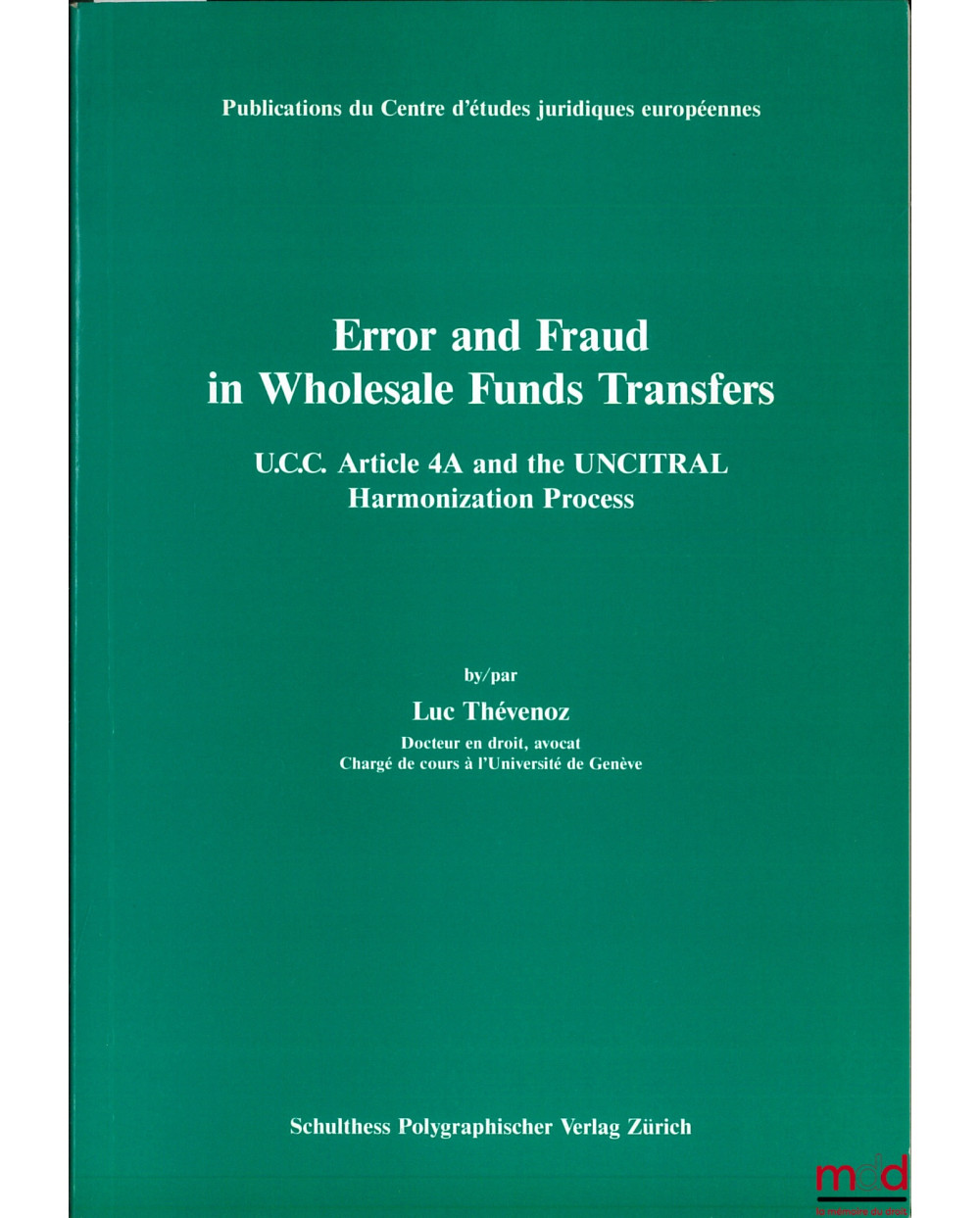 ERROR AND FRAUD IN WHOLESALE FUNDS TRANSFER, U.C.C. Article 4A and the UNCITRAL Harmonization Process, Publ. du Centre d’études juridiques européennes