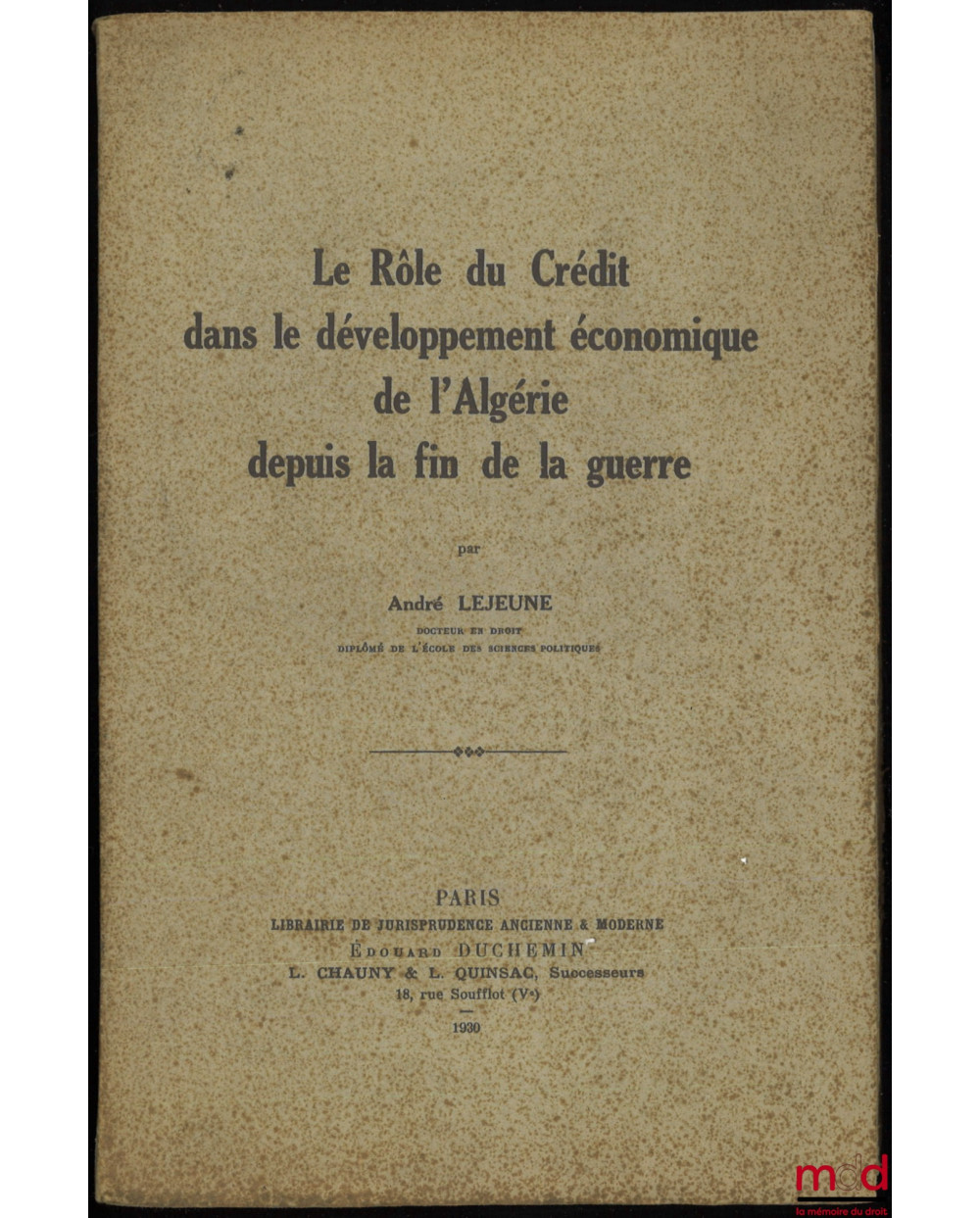 LE RÔLE DU CRÉDIT DANS LE DÉVELOPPEMENT ÉCONOMIQUE DE L’ALGÉRIE DEPUIS LA FIN DE LA GUERRE