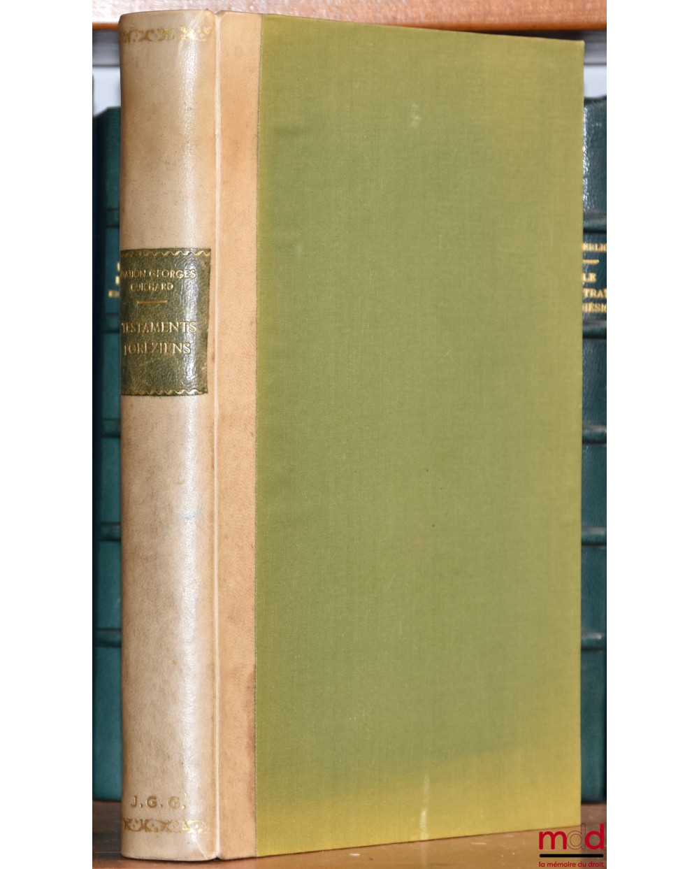 Description : in-8, demi-vélin ivoire, tit. doré sur pc. de maroquin olive, rel. au chiffre « J. G. G. », couv. cons., (couv. insolée, très rares annotations au crayon), int. frais, 377 p.