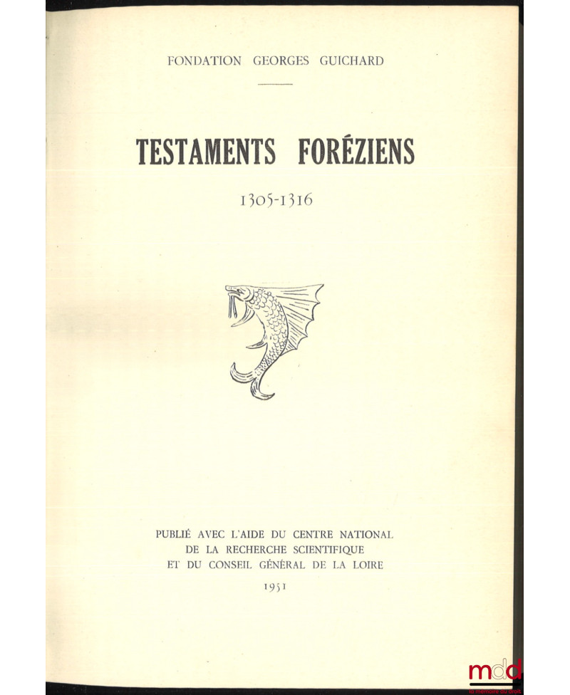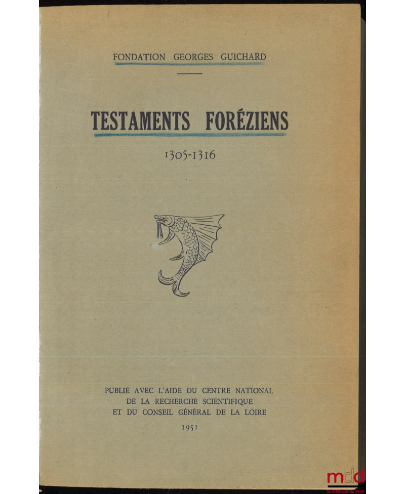 TESTAMENTS FORÉZIENS 1305-1316, Introduction de André Perret et M. Gonon, publié avec l’aide du Centre national de la recherche scientifique et du Conseil général de la Loire, Fondation Georges Guichard