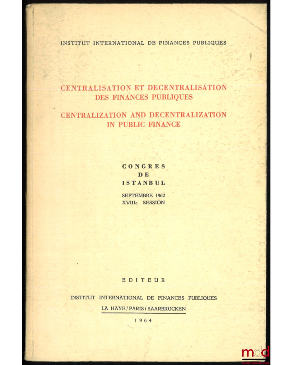 CENTRALISATION ET DÉCENTRALISATION DES FINANCES PUBLIQUES. Congrès de Istanbul, septembre 1962, XVIIIe session, Institut international de finances publiques