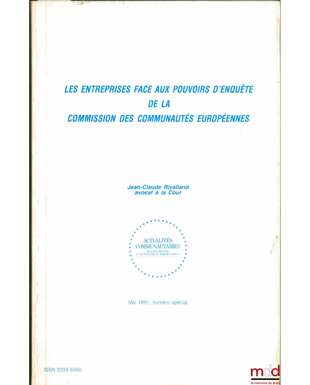 LES ENTREPRISES FACE AUX POUVOIRS D’ENQUÊTE DE LA COMMISSION DES COMMUNAUTÉS EUROPÉENNES, coll. Actualités communautaires, numéro spécial