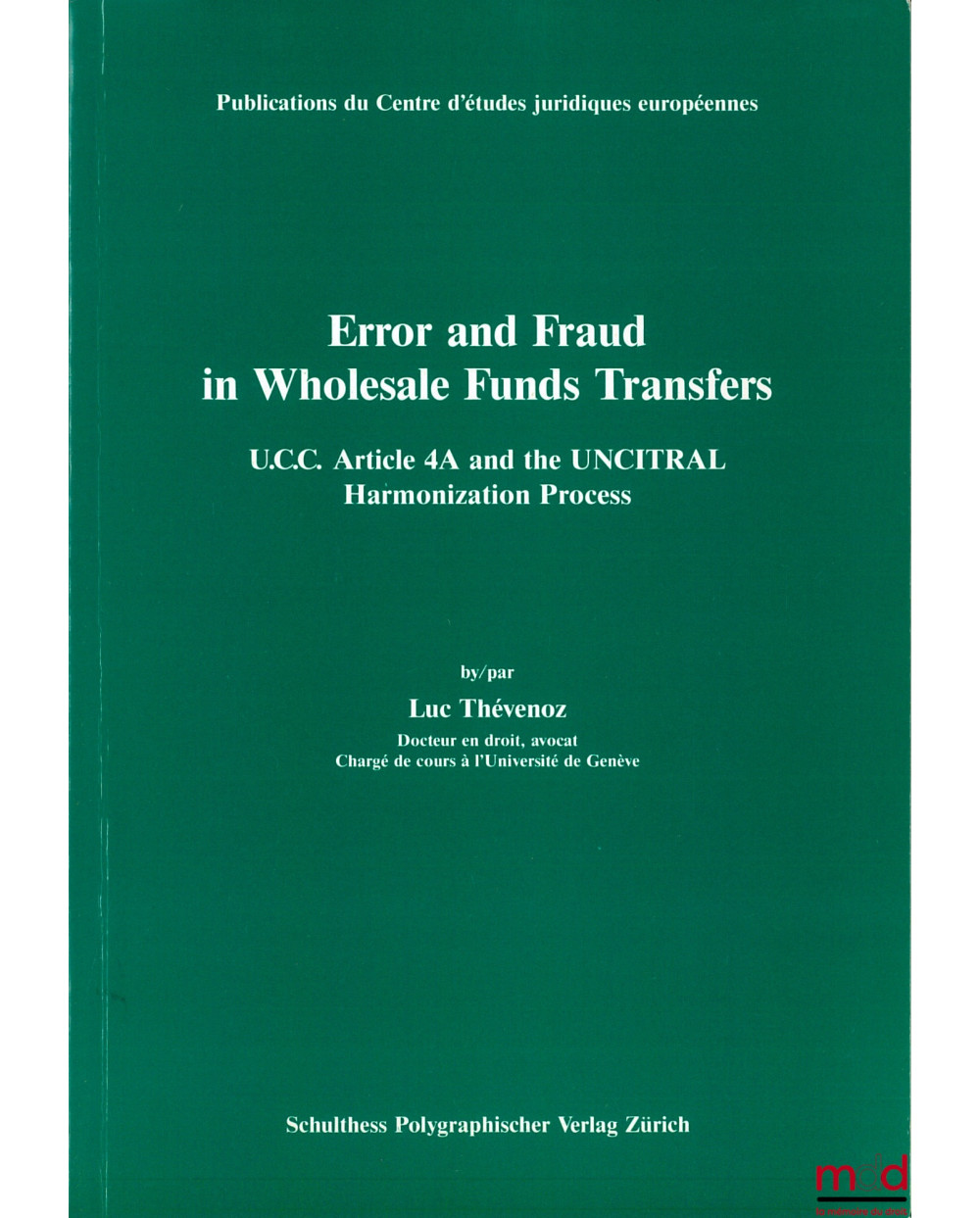 ERROR AND FRAUD IN WHOLESALE FUNDS TRANSFER, U.C.C. Article 4A and the UNCITRAL Harmonization Process, Publ. du Centre d’études juridiques européennes