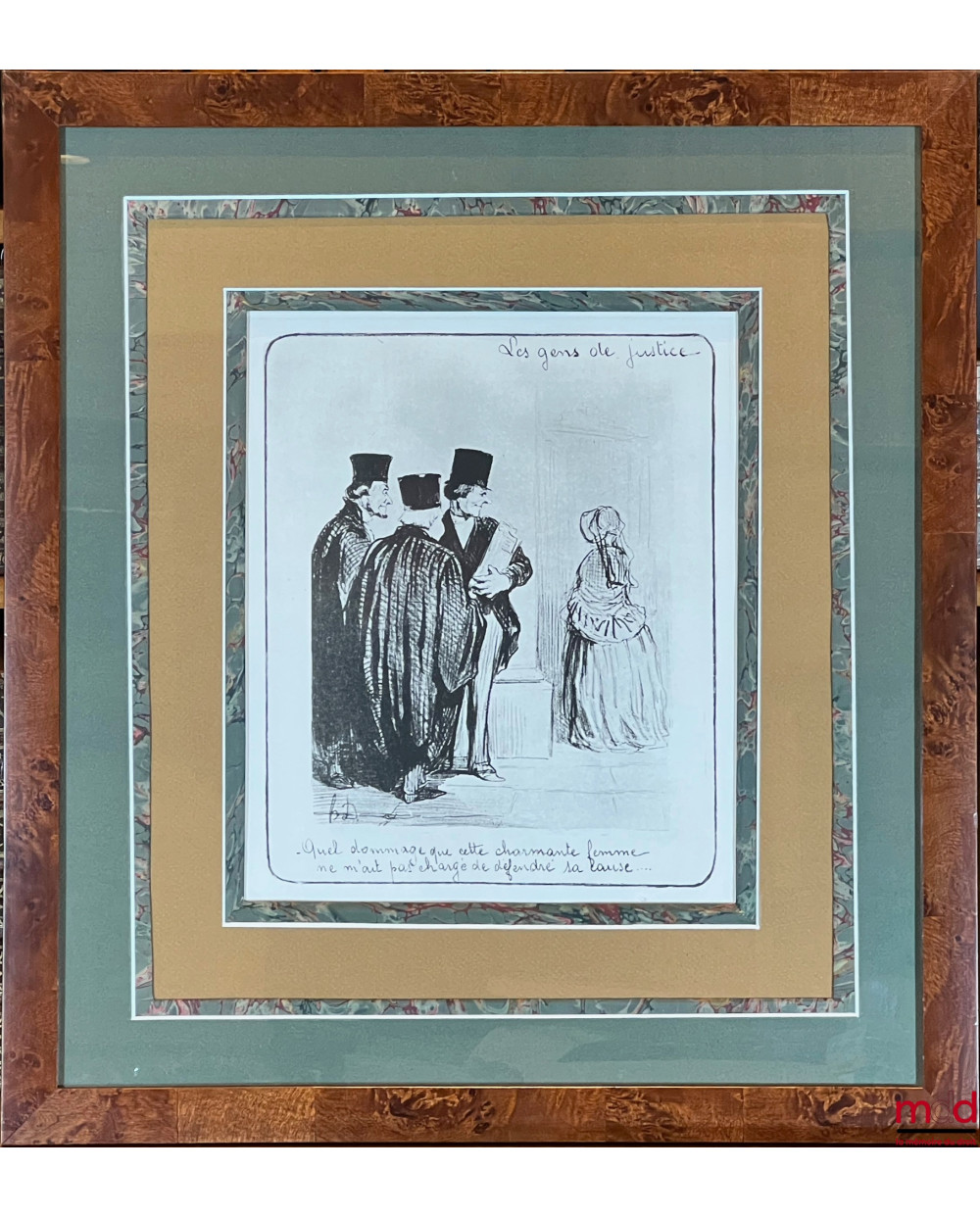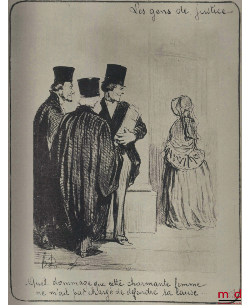 LES GENS DE JUSTICE, Lithographie en noir signée et publiée initialement dans Le Charivari du 1er novembre 1847 :« Quel dommage que cette charmante femme ne m’ait pas chargé de défendre sa cause... »