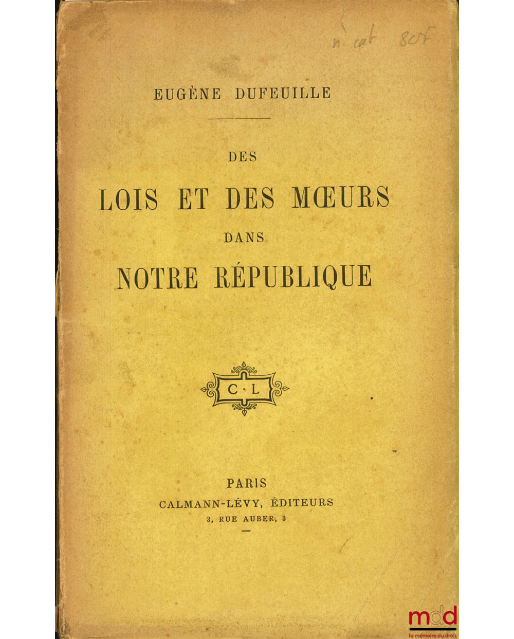 DES LOIS ET DES MŒURS DANS NOTRE RÉPUBLIQUE