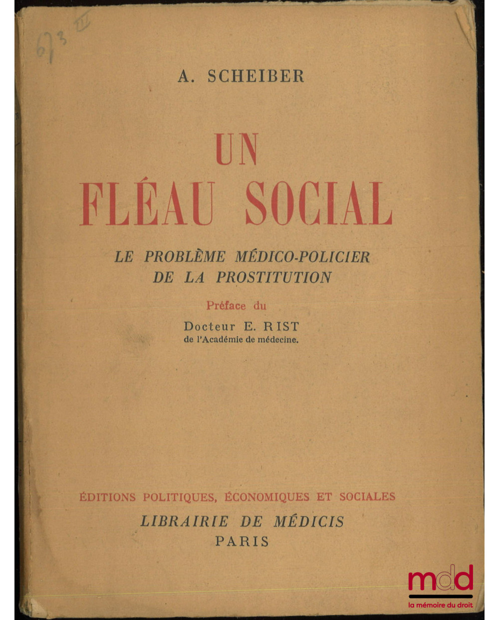 UN FLÉAU SOCIAL, Le problème médico-policier de la prostitution, Préface du docteur E. Rist