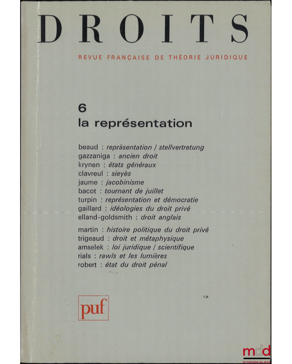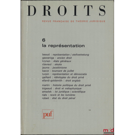 LA REPRÉSENTATION, Droits, Revue Française de Théorie Juridique, n° 6