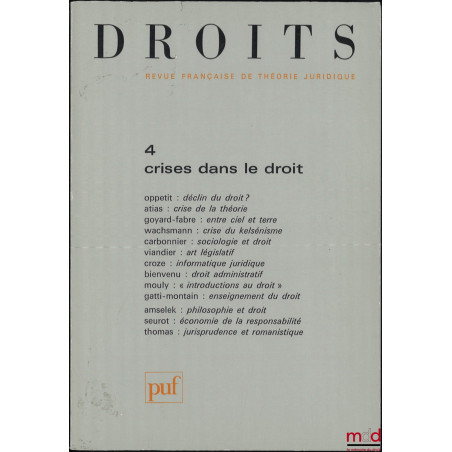 CRISES DANS LE DROIT, Droits, Revue Française de Théorie Juridique, n° 4