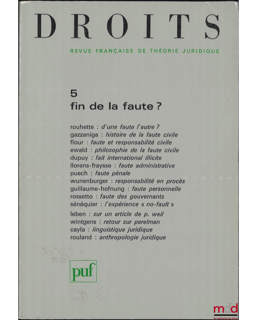 FIN DE LA FAUTE, Droits, Revue Française de Théorie Juridique, n° 5