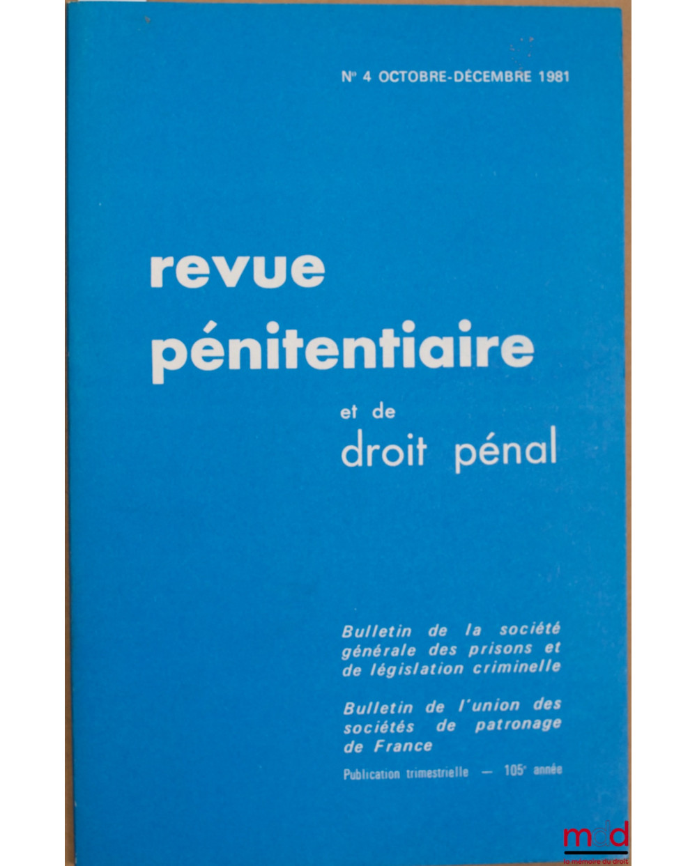 REVUE PÉNITENTIAIRE ET DE DROIT PÉNAL, oct.-déc. 1981
