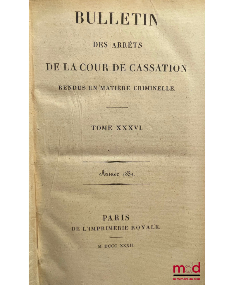 BULLETIN DES ARRÊTS DE LA COUR DE CASSATION RENDUS EN MATIÈRE CRIMINELLE, de 1831 à 1936 [mq. 11 années] ;Tables 1798-1856 (1 vol.) ; 1857-1873 (2 vol.)