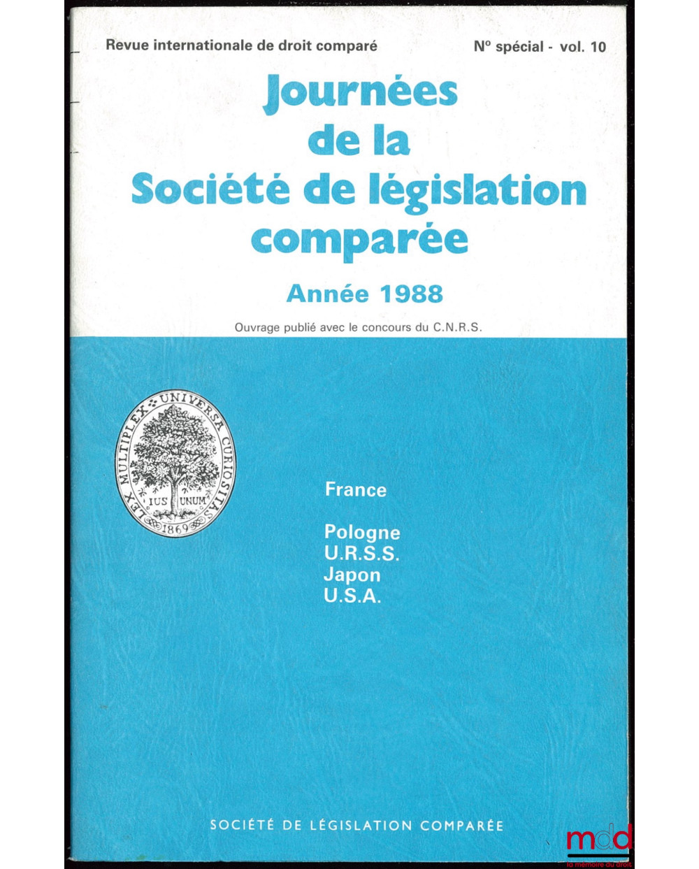 JOURNÉES DE LA SOCIÉTÉ DE LÉGISLATION COMPARÉE, année 1988, n° spécial, vol. 10 de la Revue internationale de droit comparé (France - Pologne, U.R.S.S., Japon, U.S.A.)