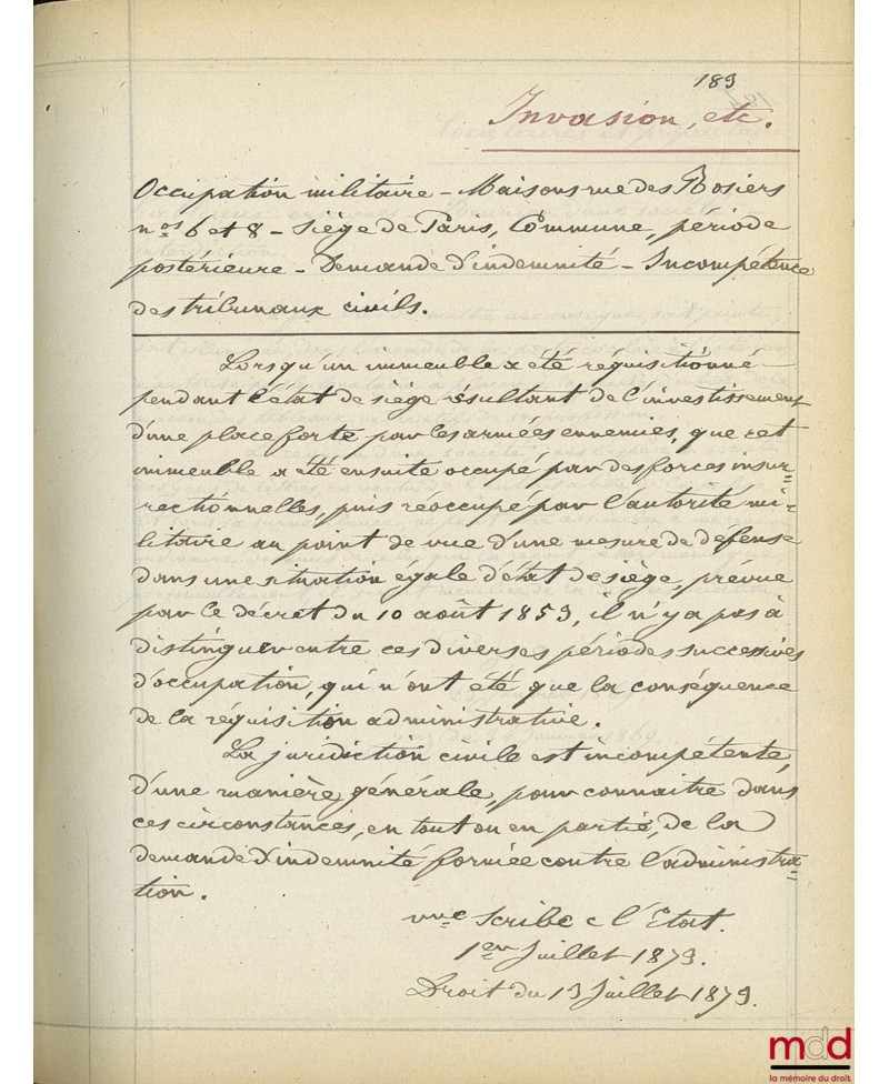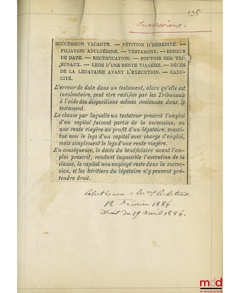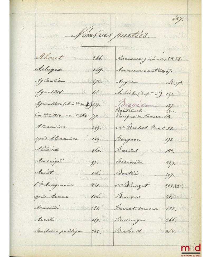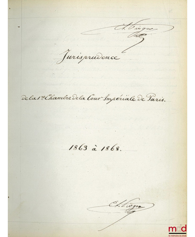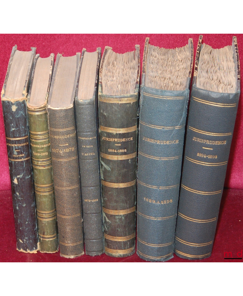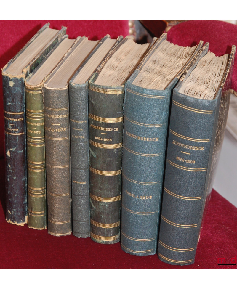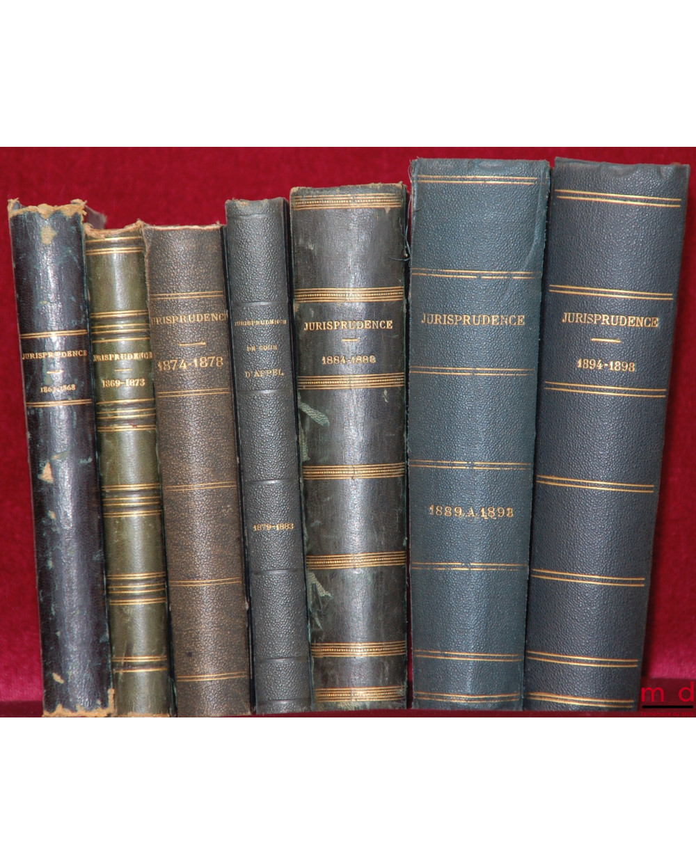 JURISPRUDENCE DE LA 1re CHAMBRE DE LA COUR D’APPEL [IMPÉRIALE] DE PARIS [1863-1898] :1er vol. : 1863 à 1868 ;2e vol. : 1869 à 1873 ;3e vol. : 1874 à 1878 ;4e vol. : 1879 à 1889 [fini à 1882] ;5e vol. : 1884 à 1888 ;6e vol. : 1889 à 1893 ;7e vol. : 1894 à 1898
