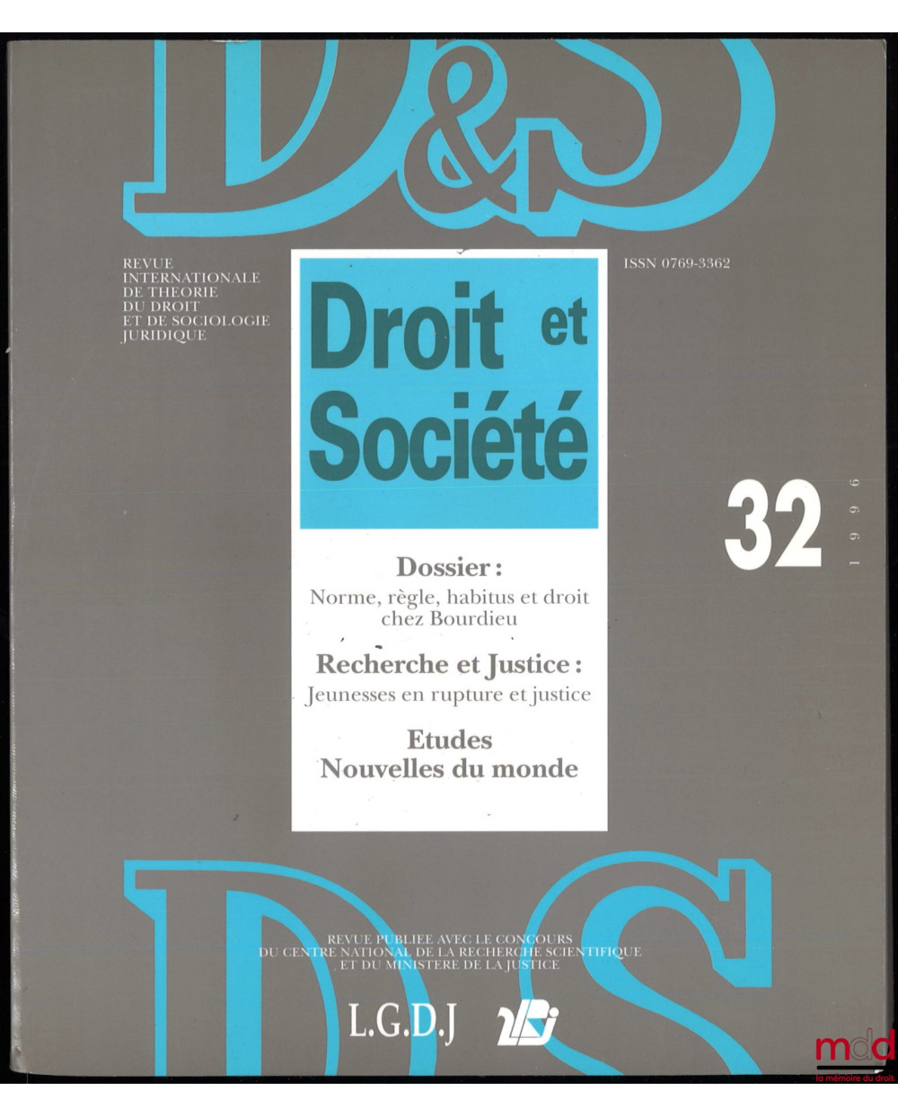 NORME, RÈGLE, HABITUS ET DROIT CHEZ BOURDIEU ; JEUNESSES EN RUPTURE ET JUSTICE ; ÉTUDES, Revue internationale de Théorie du droit et de Sociologie juridique, n° 32