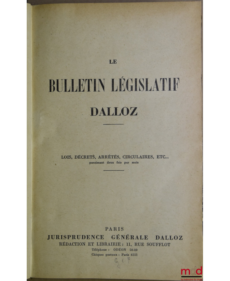 LE BULLETIN LÉGISLATIF DALLOZ, Lois, Décrets, Arrêtés, Circulaires, etc… paraissant deux fois par mois, 1953 à 1968 [complet]