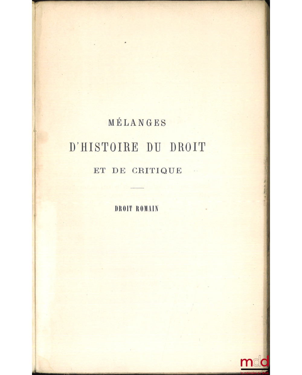 MÉLANGES D’HISTOIRE DU DROIT ET DE CRITIQUE, DROIT ROMAIN