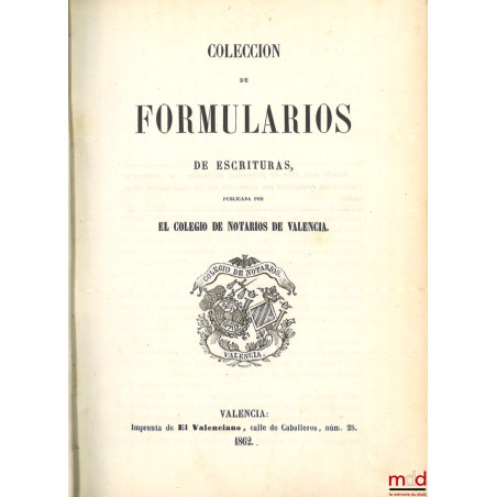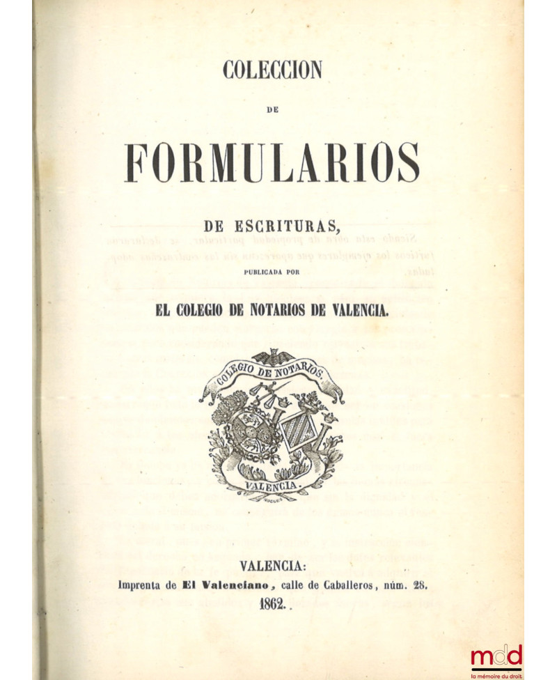 COLECCION DE FORMULARIOS DE ESCRITURAS, Publicada por el colegio de notarios de Valencia
