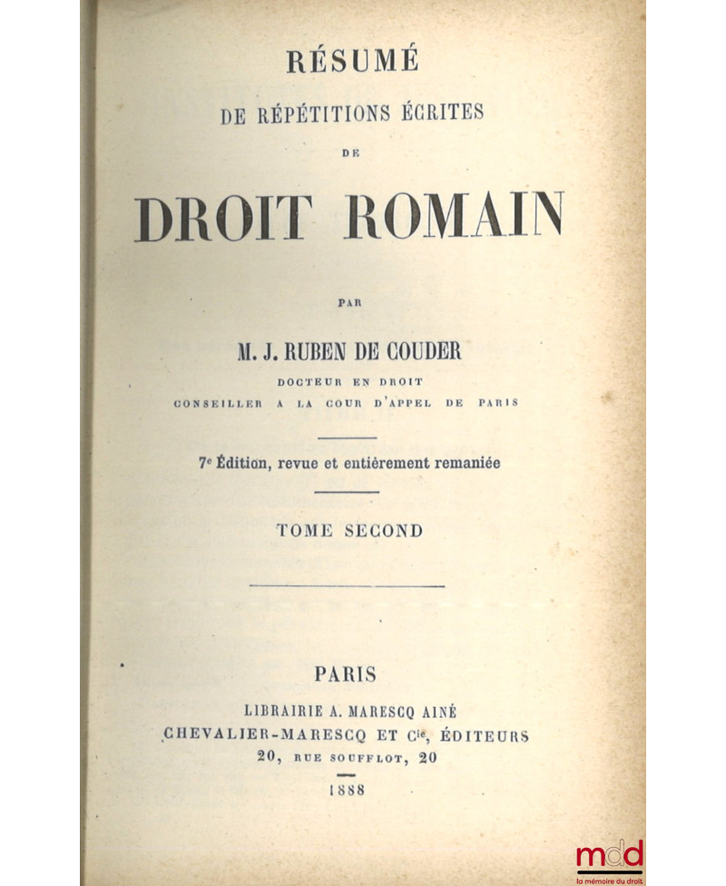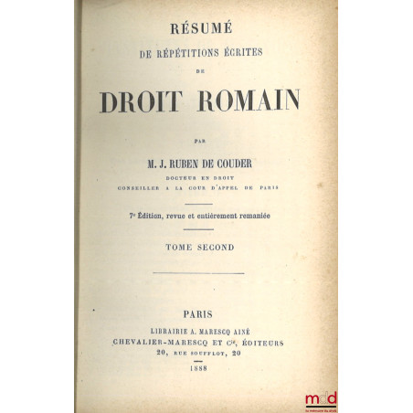 RÉSUMÉ DE RÉPÉTITIONS ÉCRITES DE DROIT ROMAIN, 7e éd. revue et entièrement remaniée, [mq. t. I]