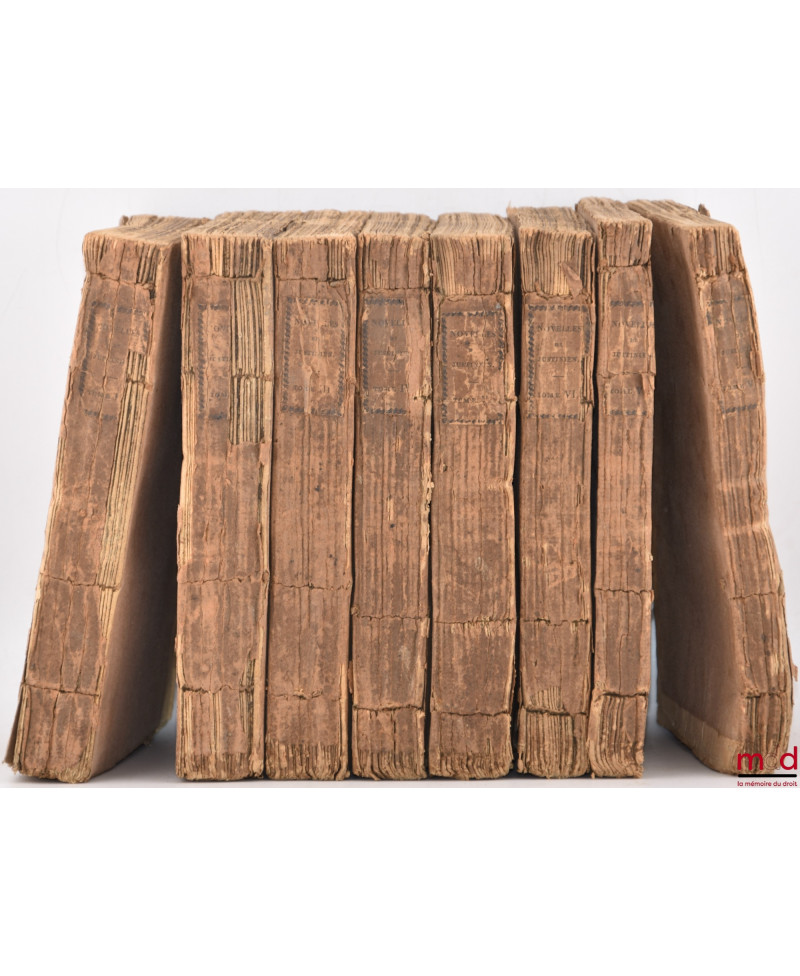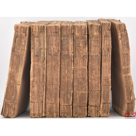 Description : 8 vol. in-12, br. (reliure d’attente), non coupé, impression sur papier vergé, (ouvrages passés, mq. au dos, couv. salies, papier parfois acidifié avec des piqûres et rousseurs), int. très frais malgré les défauts précités, 2216 p. [pagination continue].