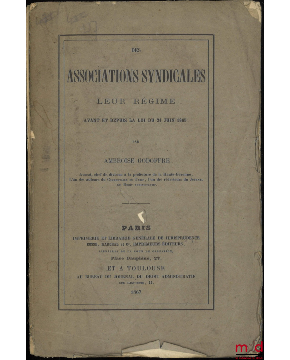 DES ASSOCIATIONS SYNDICALES, Leur régime avant et depuis la loi du 21 juin 1865