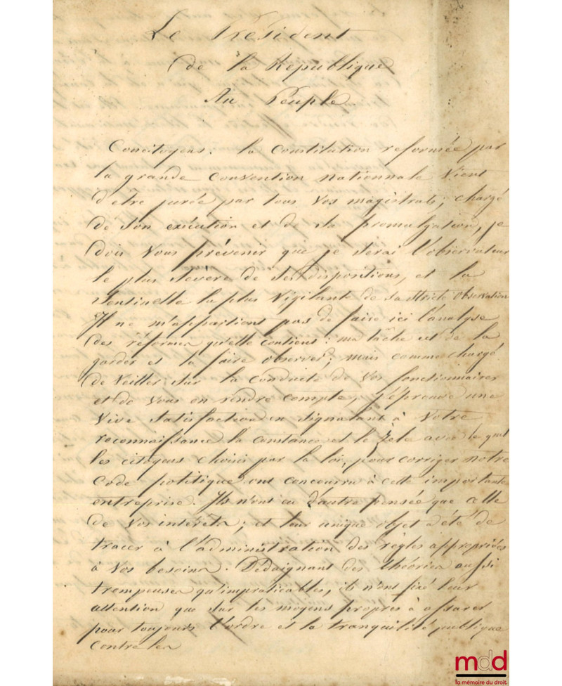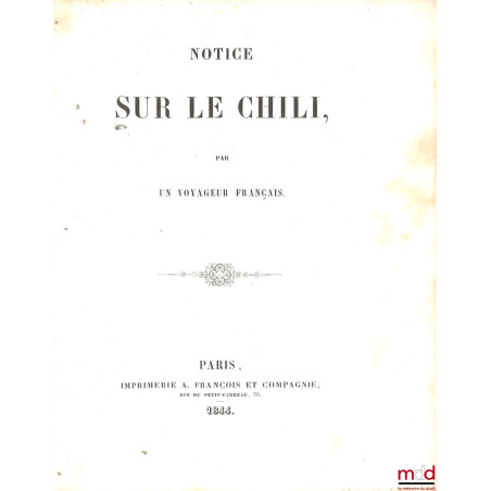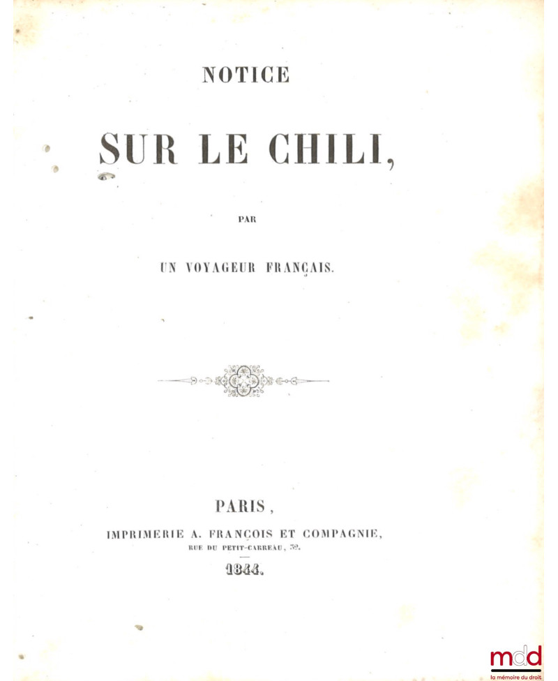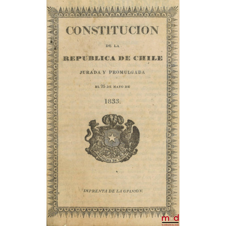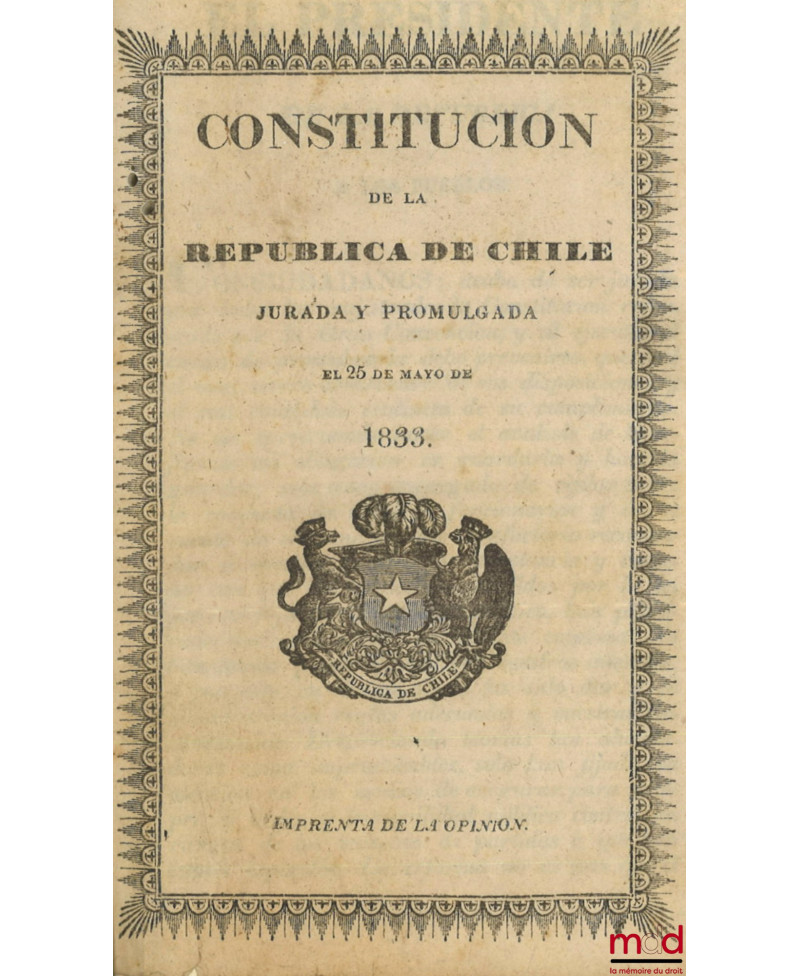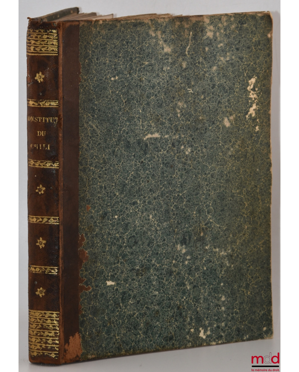 CONSTITUCION DE LA REPUBLICA DE CHILE, Jurada y promulgada el 25 de mayo de 1833, [Avec traduction française manuscrite], Suivi d’une notice sur le Chili par un voyageur français