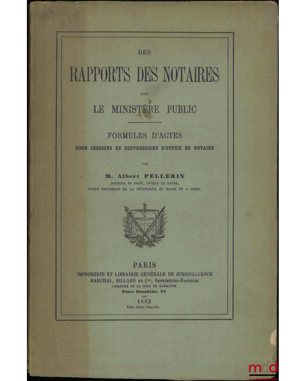 DES RAPPORTS DES NOTAIRES AVEC LE MINISTÈRE PUBLIC, Formulaires d’actes pour cessions et suppressions d’office de notaire