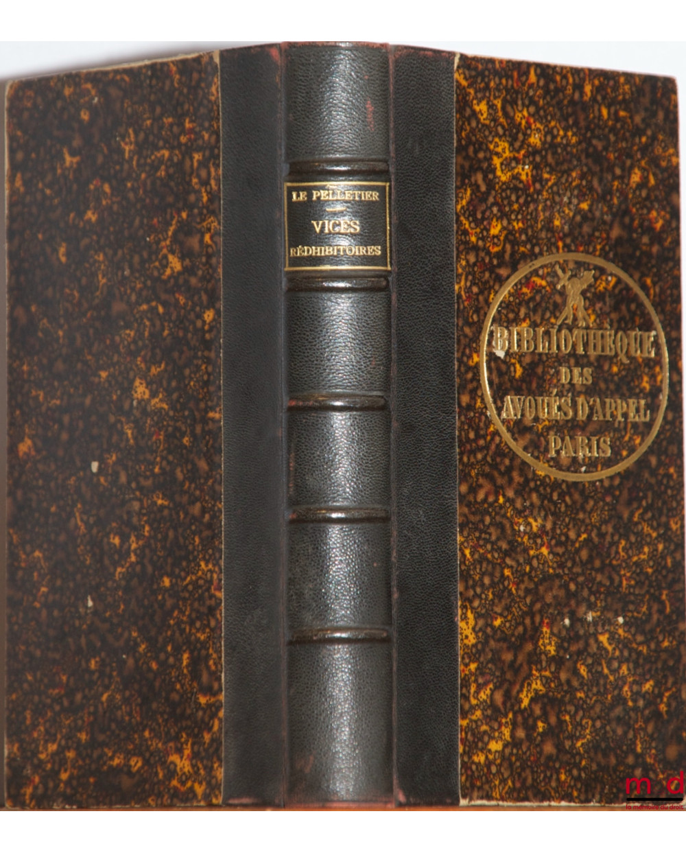- in-8, demi-chagrin noir, tit. et filet encadrant dorés sur dos à 5 nerfs, tr. mouchetées, [Cet ouvrage provient de la bibliothèque des Avoués près la cour d’appel de Paris, il peut être frappé aux armes de la Chambre des Avoués et revêtir des marques de bibliothèque], VIII-288 p.