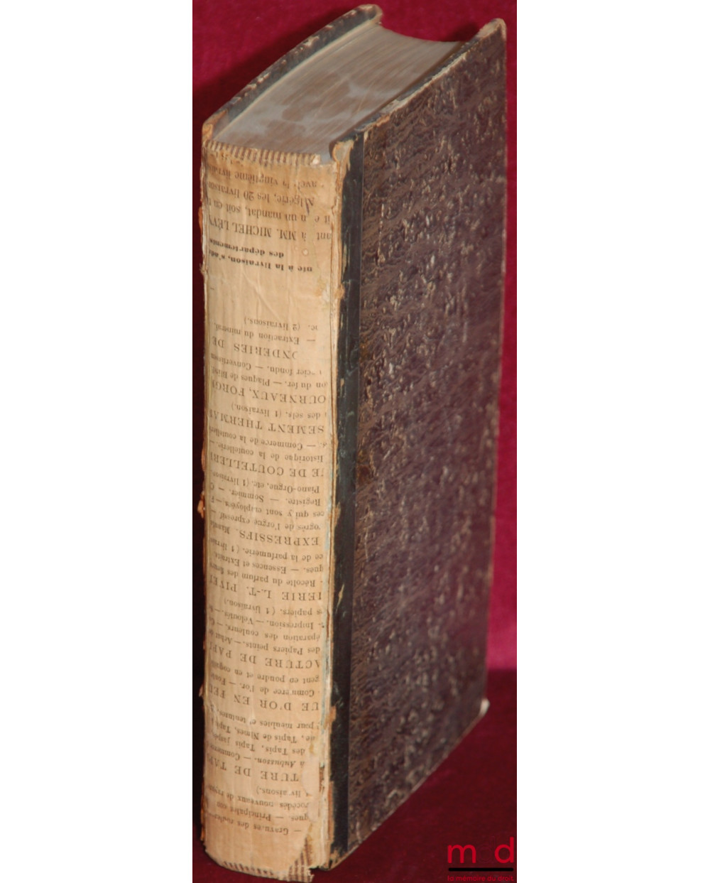 - in-8, demi-basane noire, tr. mouchetées, (coiffes et dos absents, entre la p. 686 et 687 p. déchirée qui est le tableau dépliant synoptique des formalités manquant).