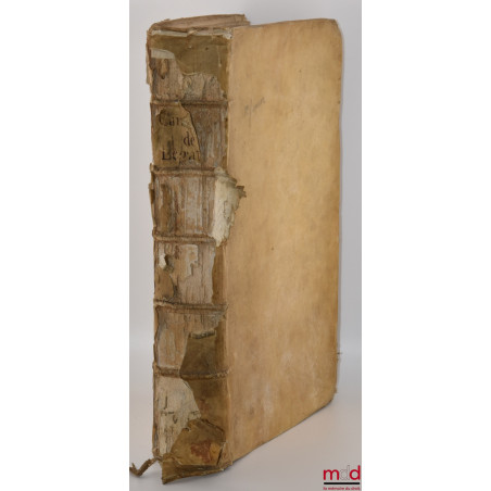 Description : in-folio, plein vélin ivoire, tit. manuscrit sur dos à cinq nerfs, lettrines ornées, bandeaux et vignettes, imp. en double colonne, (rel. très usée avec d’importants mq. au dos, coupes latérales et coins frottés, charnière inf. fragile, qq. tâches à l’int, papier parfois très acidifié, des trous de vers traversants sans incidence sur la lecture), [40]-828-[Index] p.