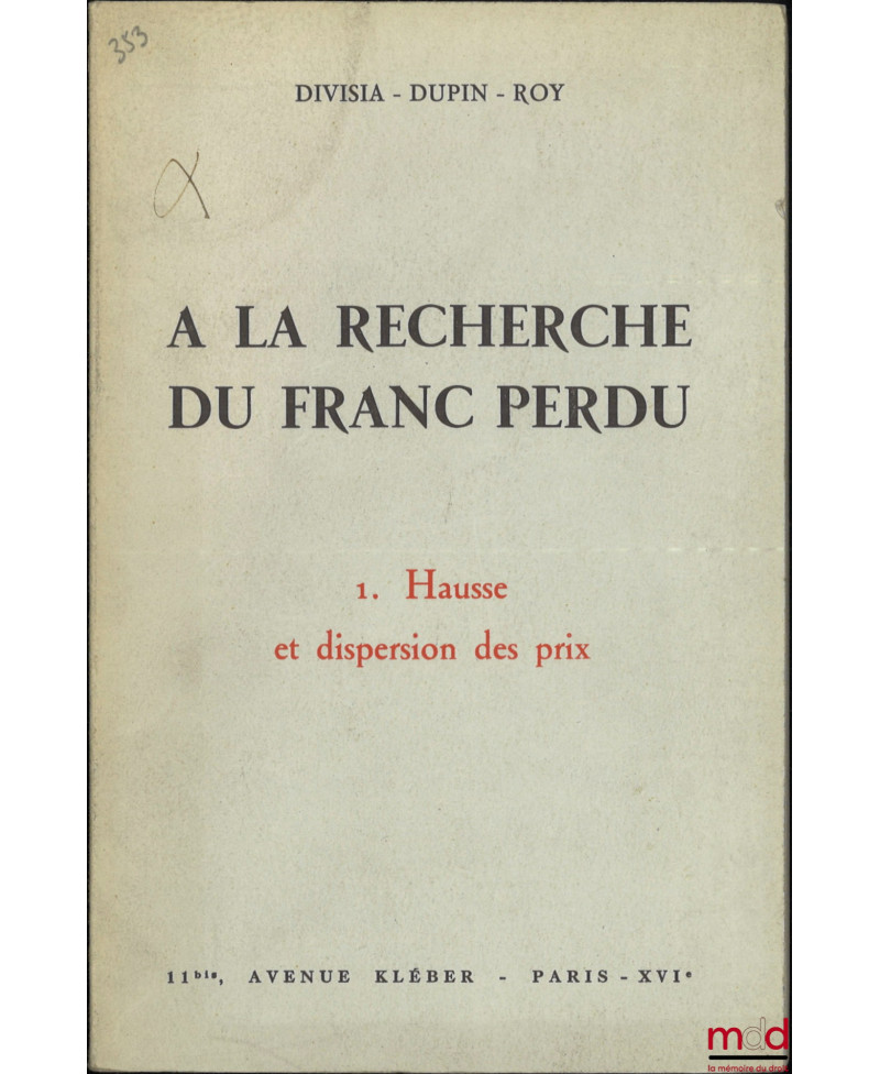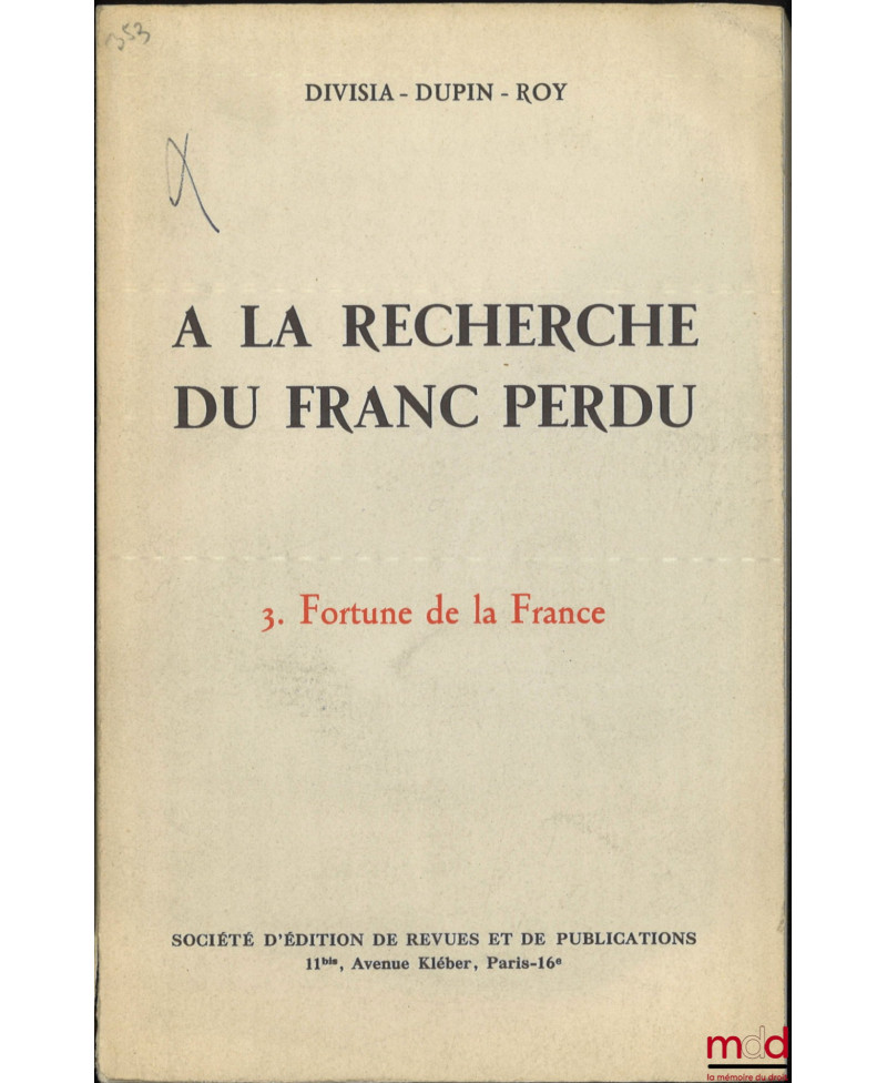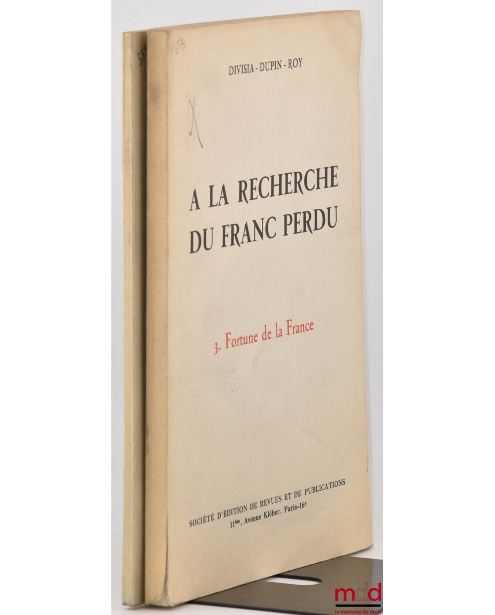 À LA RECHERCHE DU FRANC PERDU, t. I Hausse et dispersion des prix, t. III : Fortune de la France, [mq. t. II]