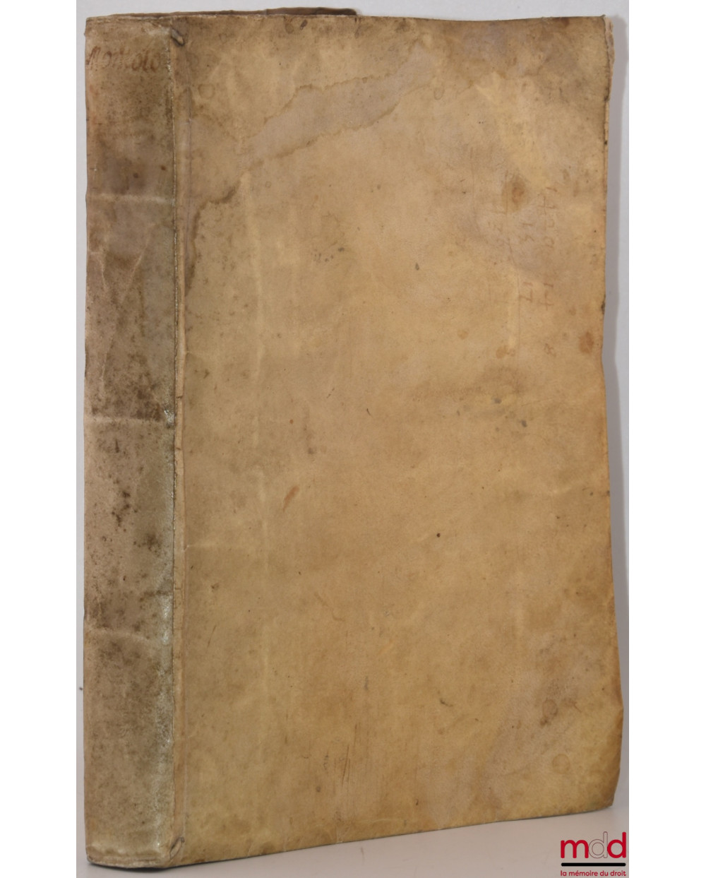Description : in-8, pl. velin beige, lettrines, bandeaux, Ex-libris étiqueté, tamponné et manuscrit, (couv. muette, rel. tachée, nb. rousseurs et mouillures à l’int., marques de bibl.), 307-[25] p.