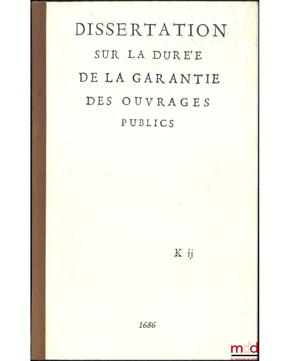 DISSERTATION SUR LA DURÉE DE LA GARANTIE DES OUVRAGES PUBLICS