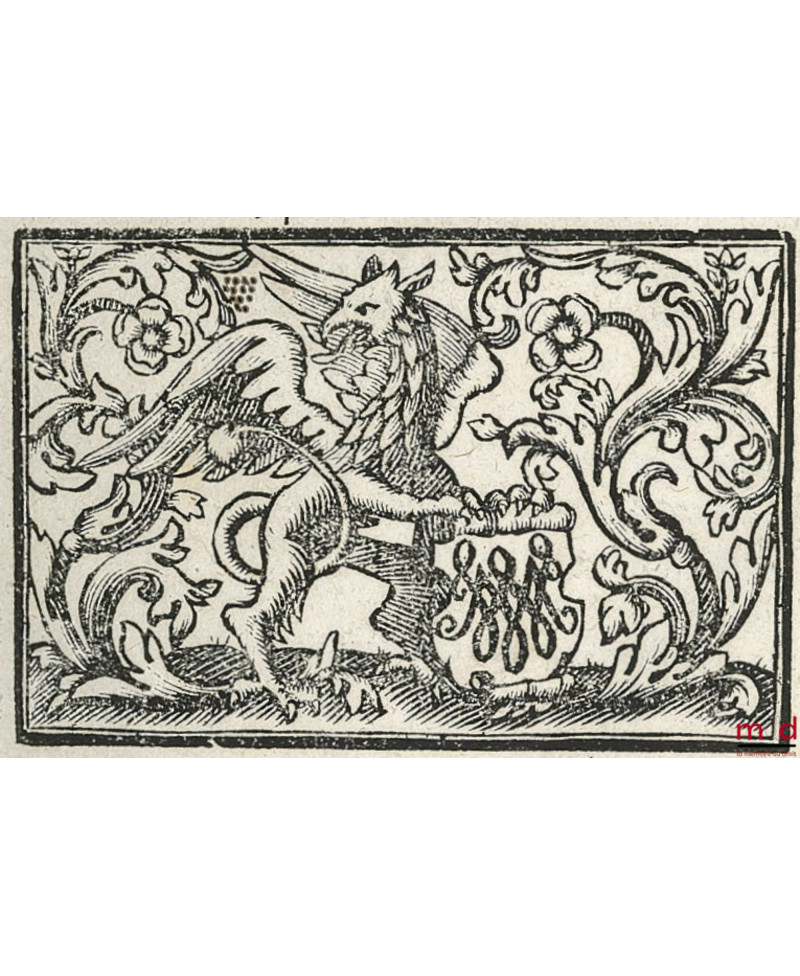 Description : in-4, pl. veau moucheté, dos richement orné de fleurons, tr. rouge, p. de tit. en rouge et noir, impression en double colonne, portrait gravé de l’auteur hors texte, (épidermure sur les plats, coiffes abîmées, mouillure marginale), bel exemplaire malgré les défauts cités, 4 f.- 976 p.- 43 f.