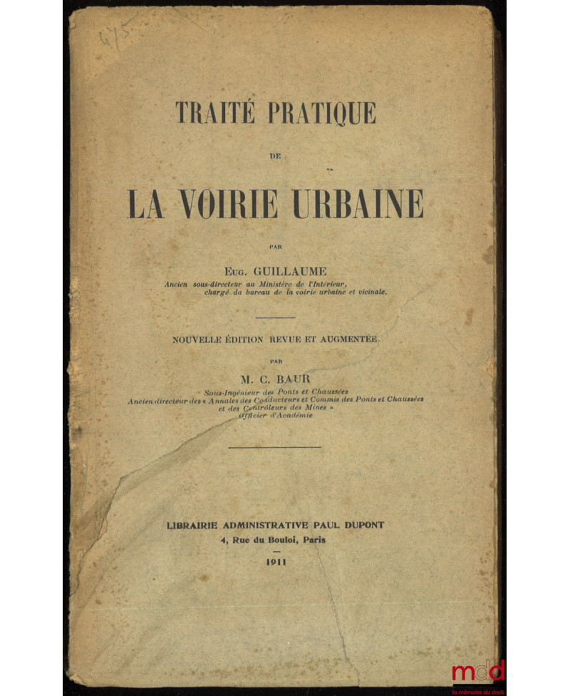 TRAITÉ PRATIQUE DE LA VOIRIE URBAINE, nouvelle éd. revue et augmentée par M.C. BAUR