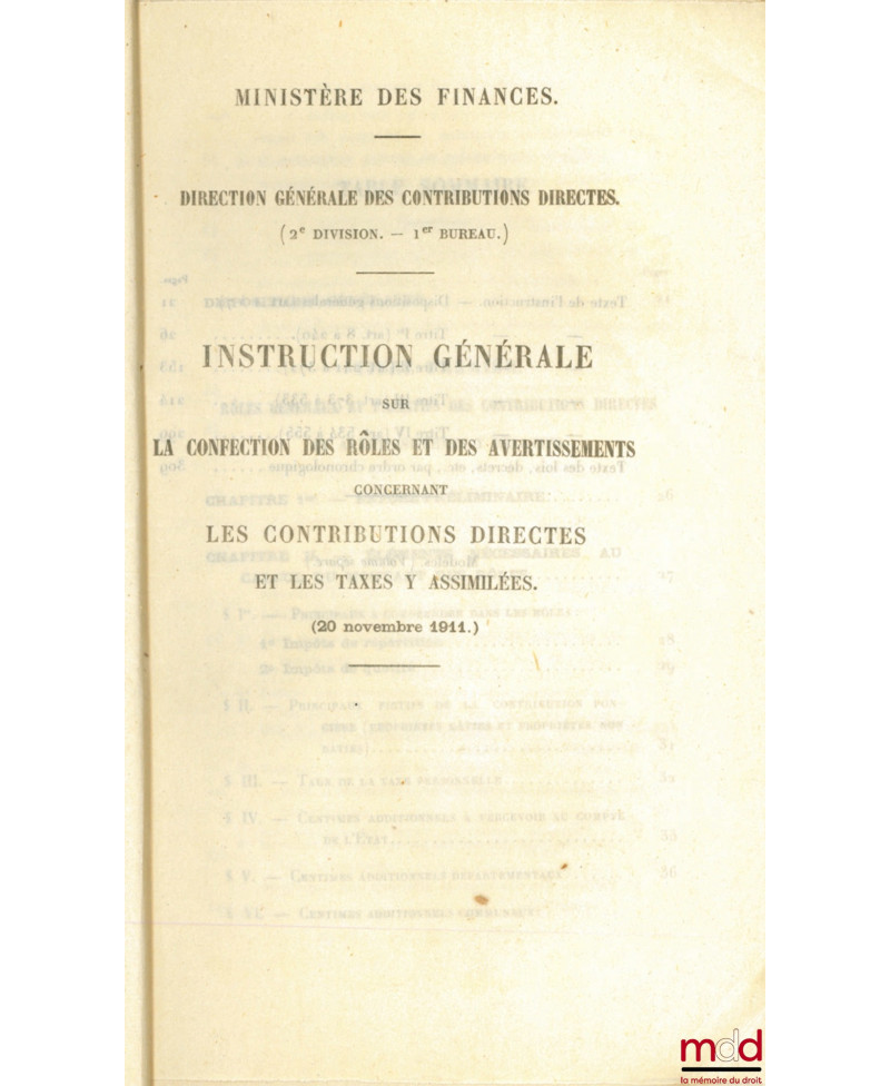 INSTRUCTION GÉNÉRALE SUR LA CONFECTION DES RÔLES ET DES AVERTISSEMENTS CONCERNANT LES CONTRIBUTIONS DIRECTES ET LES TAXES Y A...
