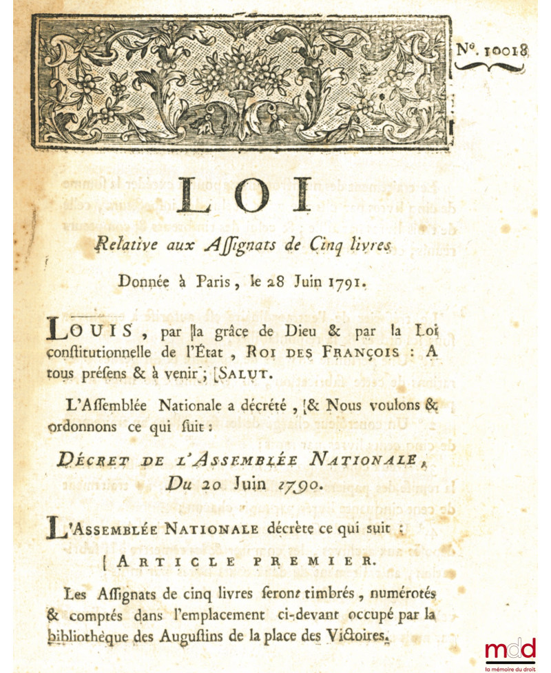 Lettres Patentes du Roi, Sur un Décret de l?Assemblée Nationale, qui abolit le Retrait lignager, le Retrait de Mi-denier, les...