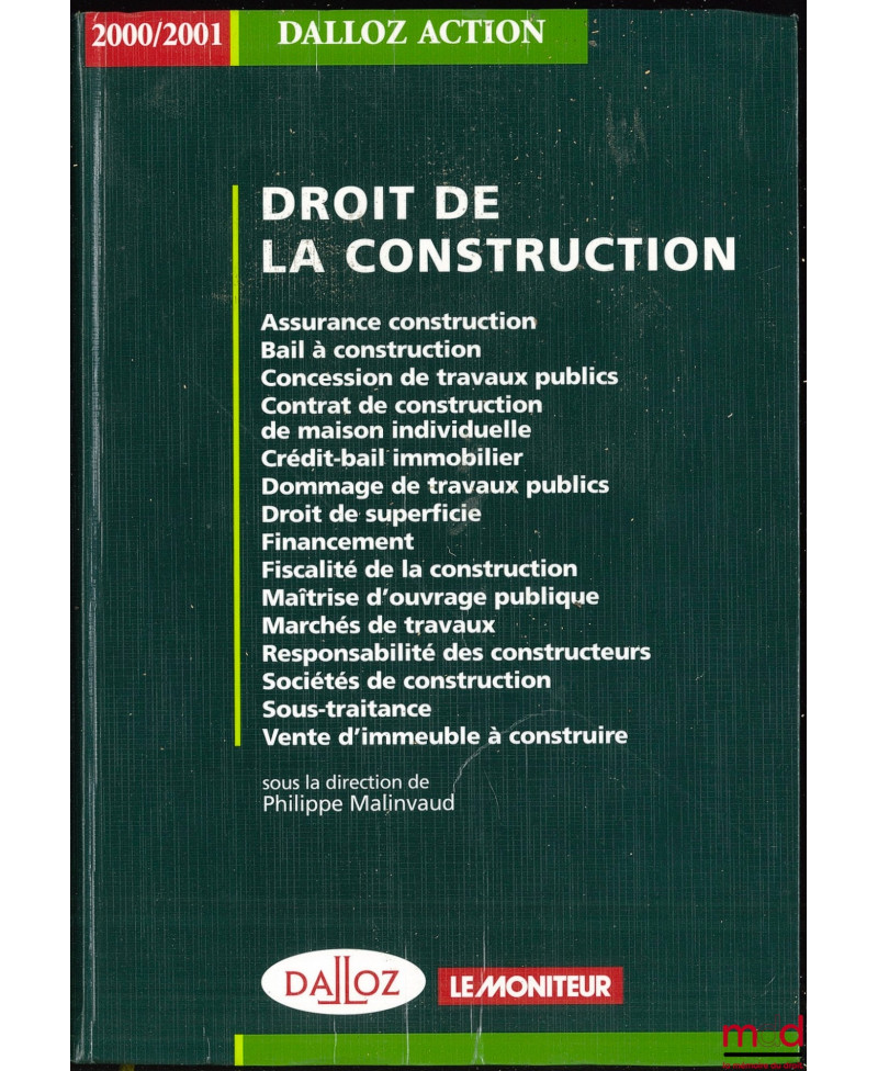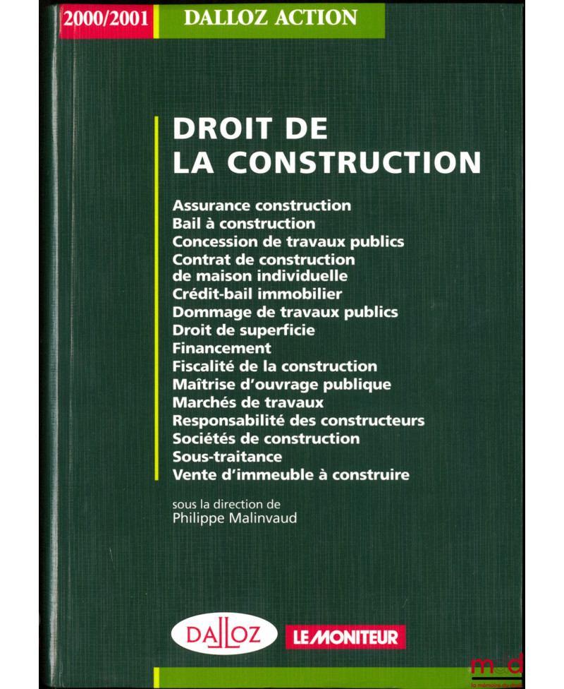 DROIT DE LA CONSTRUCTION. Assurance construction - Bail à construction - Concession de travaux publics - Contrat de construction de maison...