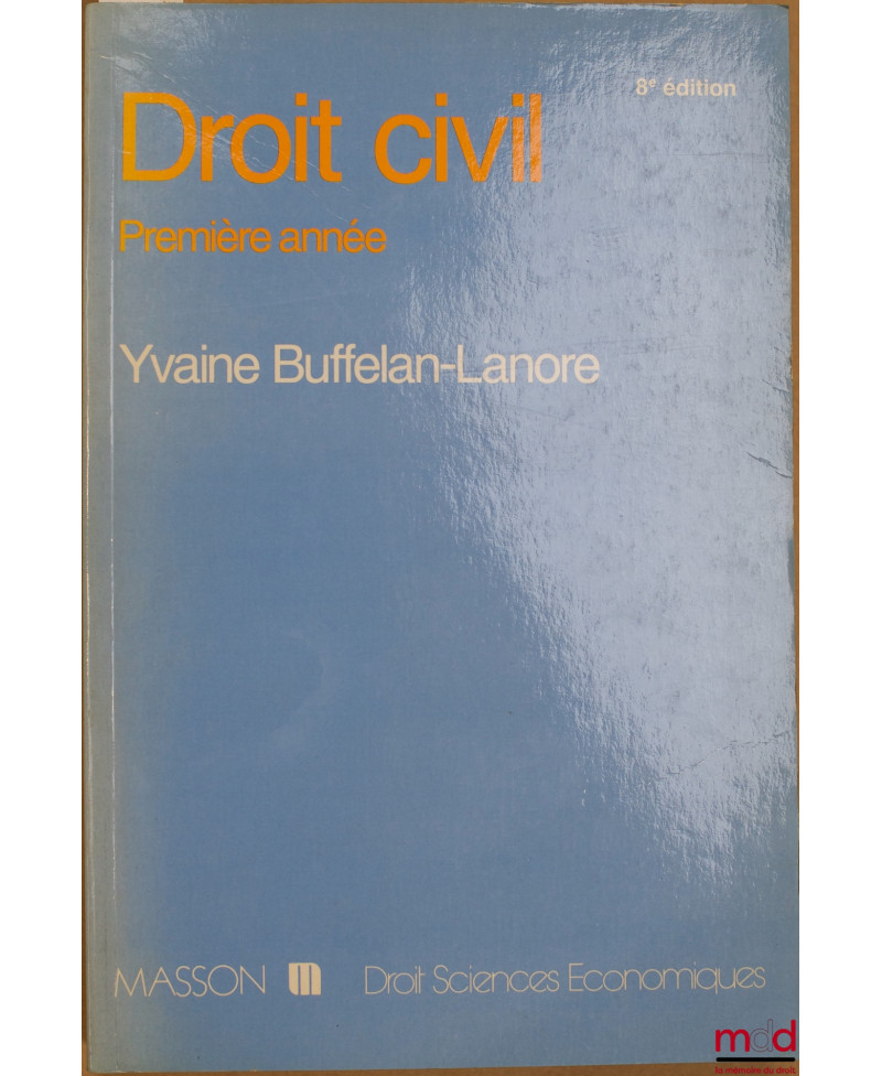 Aperçu Ajouter au panier Ajouter à vos souhaits Comparer Droit moderne (XX-XXIe siècles) BUFFELAN-LANORE (Yvaine) DROIT CIVIL PREMIÈRE ANNÉE, 8ème éd., coll. Droit sciences économiques Prix DROIT CIVIL PREMIÈRE ANNÉE, 8ème éd., coll. Droit sciences économiques