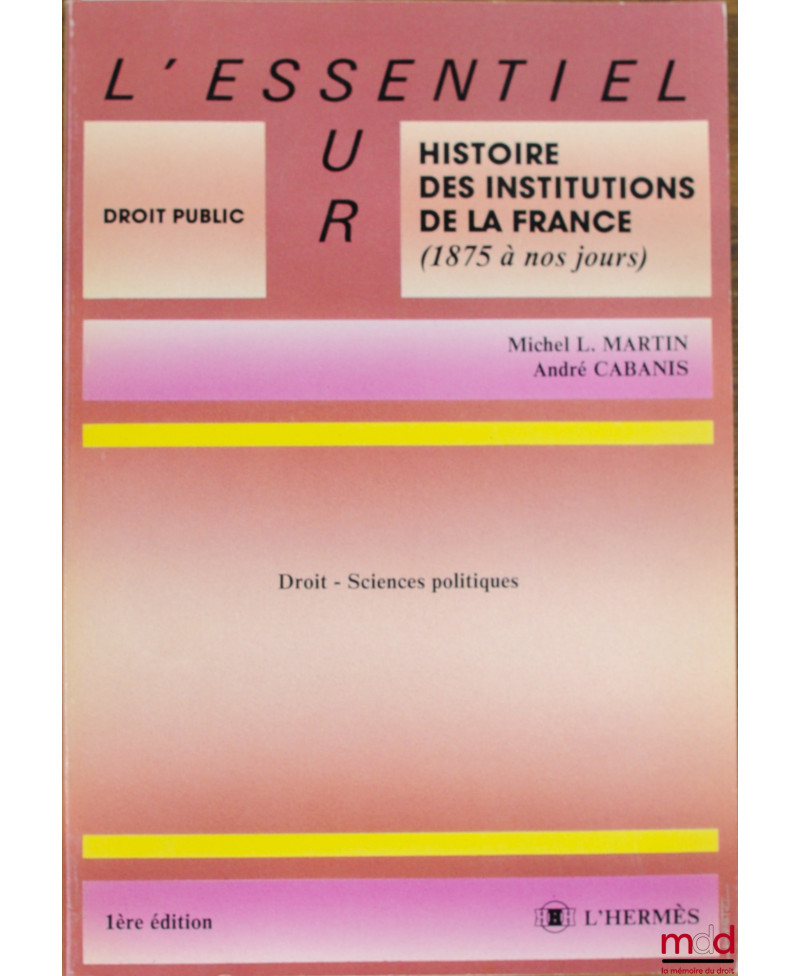 Aperçu Ajouter au panier Ajouter à vos souhaits Comparer Droit moderne (XX-XXIe siècles) MARTIN (Michel L.) et CABANIS (André) DROIT - SCIENCES POLITIQUES, 1ère éd., coll. L’essentiel sur / Droit public Prix DROIT - SCIENCES POLITIQUES, 1ère éd., coll. L’essentiel sur / Droit public