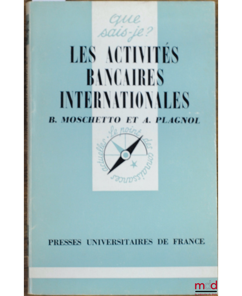 Aperçu Ajouter au panier Ajouter à vos souhaits Comparer Droit moderne (XX-XXIe siècles) MOSCHETTO (Bruno) et PLAGNOL (André) LES ACTIVITÉS BANCAIRES INTERNATIONALES, coll. Que sais-je ? Prix LES ACTIVITÉS BANCAIRES INTERNATIONALES, coll. Que sais-je ?