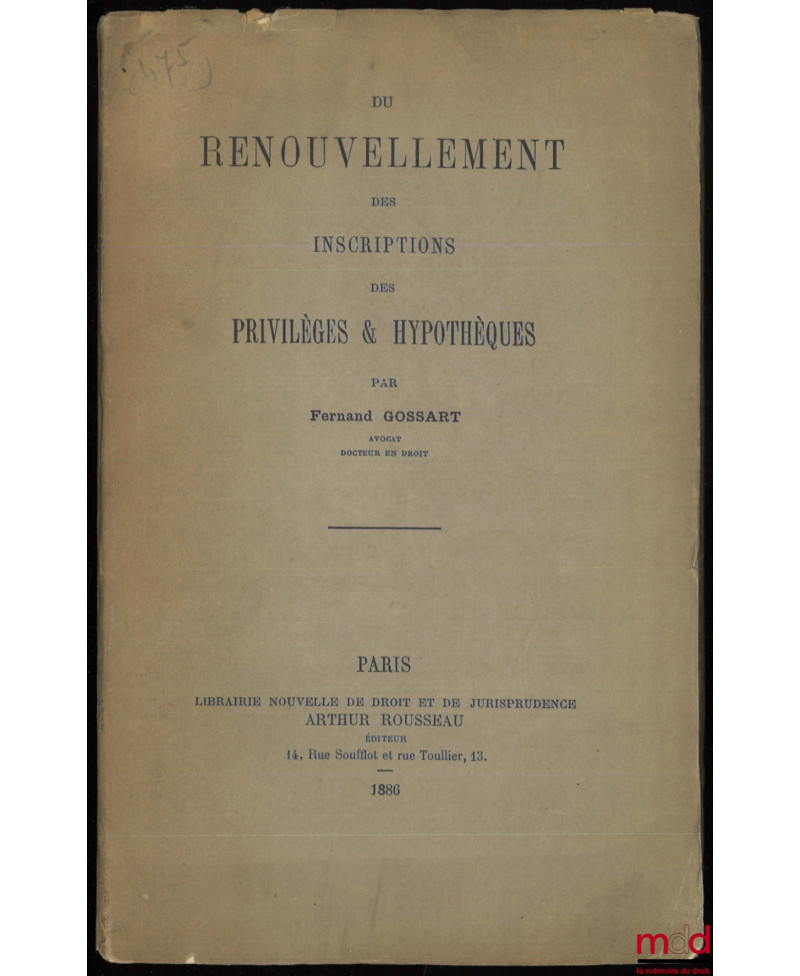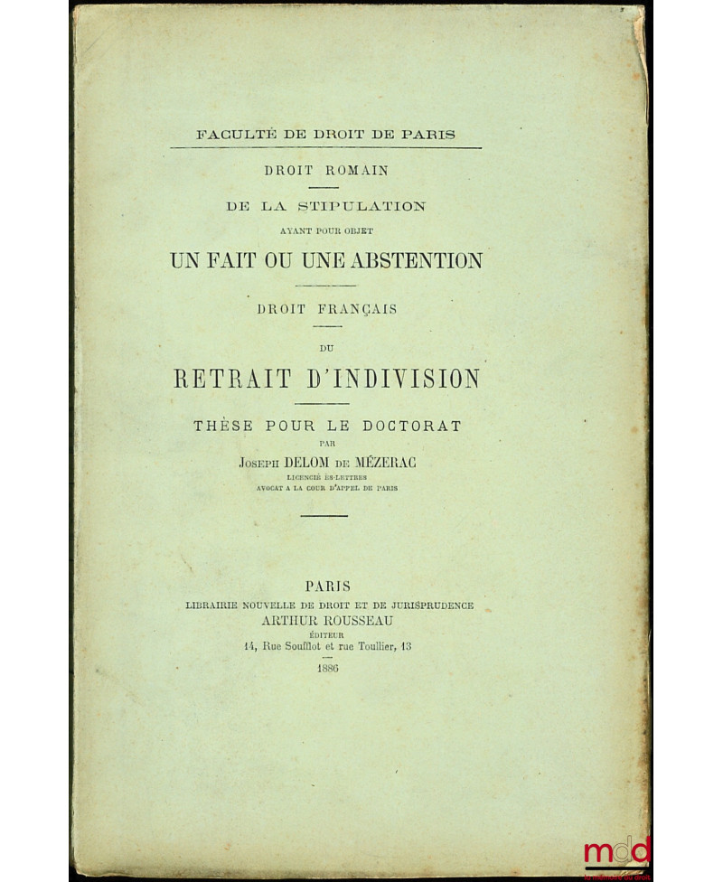 Le portail de la bibliothèque patrimoniale de droit de La Mémoire du Droit CATALOGUE ÉTÉ 2025  —...