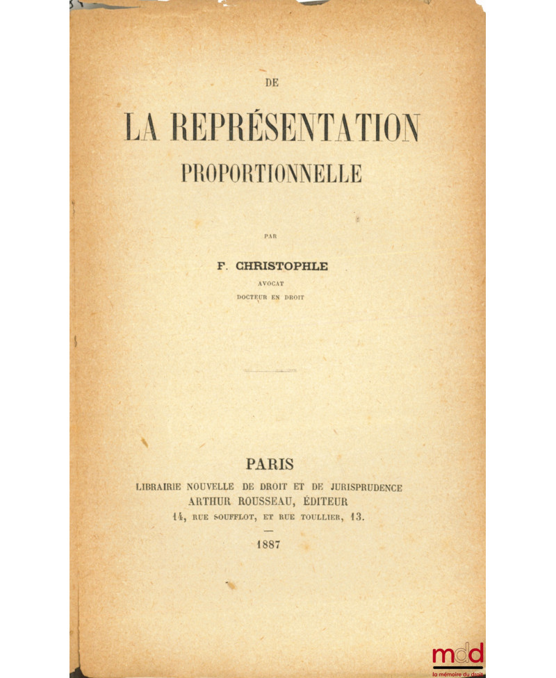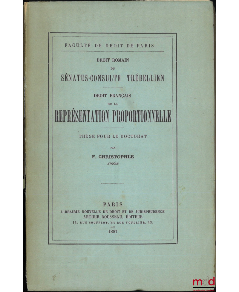 DROIT FRANÇAIS DE LA REPRÉSENTATION PROPORTIONNELLE, Droit romain du Sénatus-Consulte Trébellien, Thèse