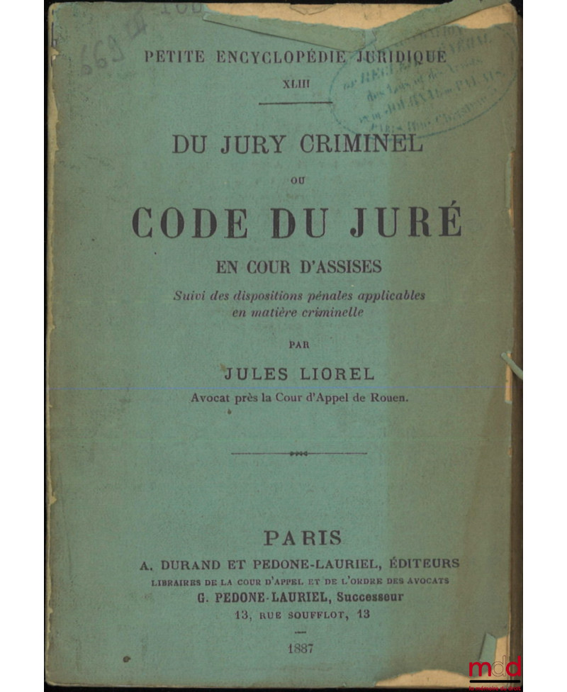 DU JURY CRIMINEL Ou Code du juré en cour d?assises, Suivi des dispositions pénales applicables en matière criminelle, Petite ...