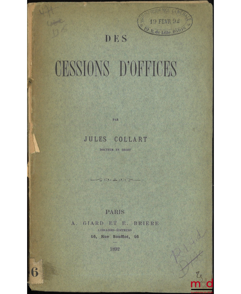 ÉTUDES SUR L?HISTOIRE DU DROIT ROMAIN, t. I [seul paru] : La folie et la prodigalité, Étude sur les deux formes d?aliénation ...
